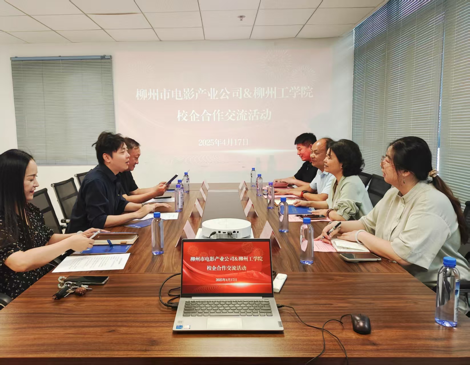 4月17日,学校副校长梁开庆率队赴广西柳州市电影产业有限责任公司、百智讯联网络科技有限公司开展访企拓岗促就业专项行动,设计艺术学院党总支书记文海燕,动画教研室主任赵云全、副主任刘依杭及辅导员郑利斌陪同参加。