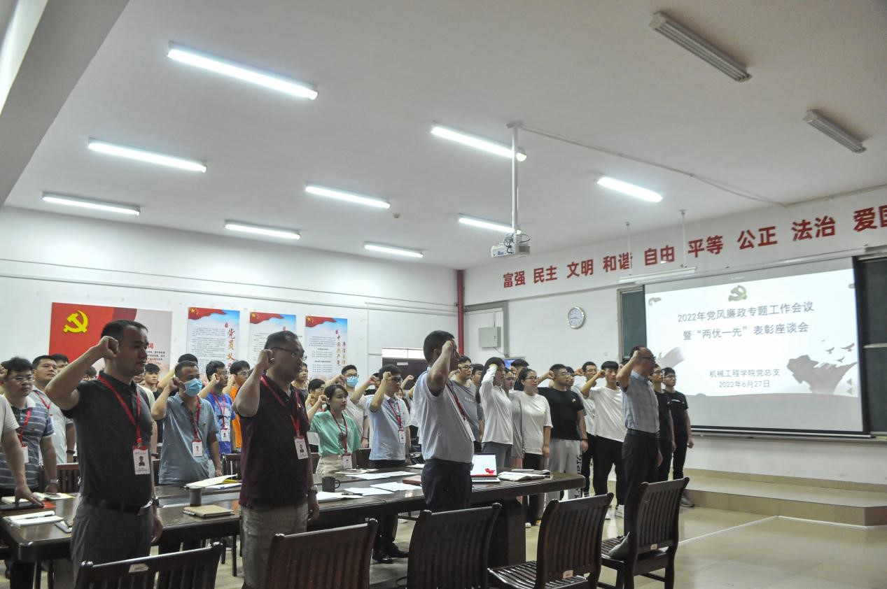 6月27日,机械工程学院党总支在党员活动室召开2022年党风廉政专题工作会议暨“两优一先”表彰座谈会,会议由党总支组织委员张金凤主持,党总支班子、各支部书记及全体党员参加会议。