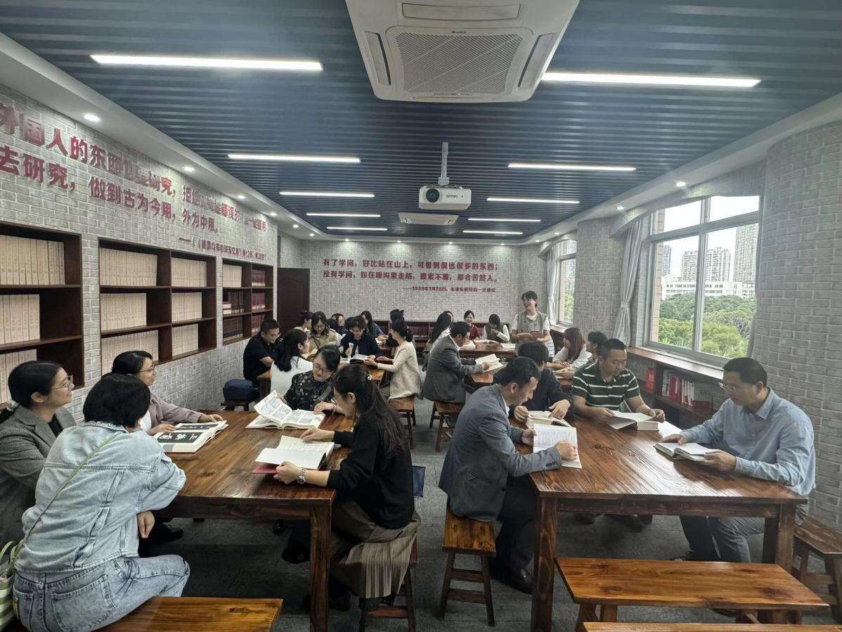 随后,教师们步入书香浓郁的学习室,围坐一堂静心品读红色经典著作,并结合教学科研实际展开深入交流。大家踊跃发言,在思想碰撞中重温党的理论精髓,深化对马克思主义立场、观点、方法的理解,努力做到学思用贯通、知信行统一。