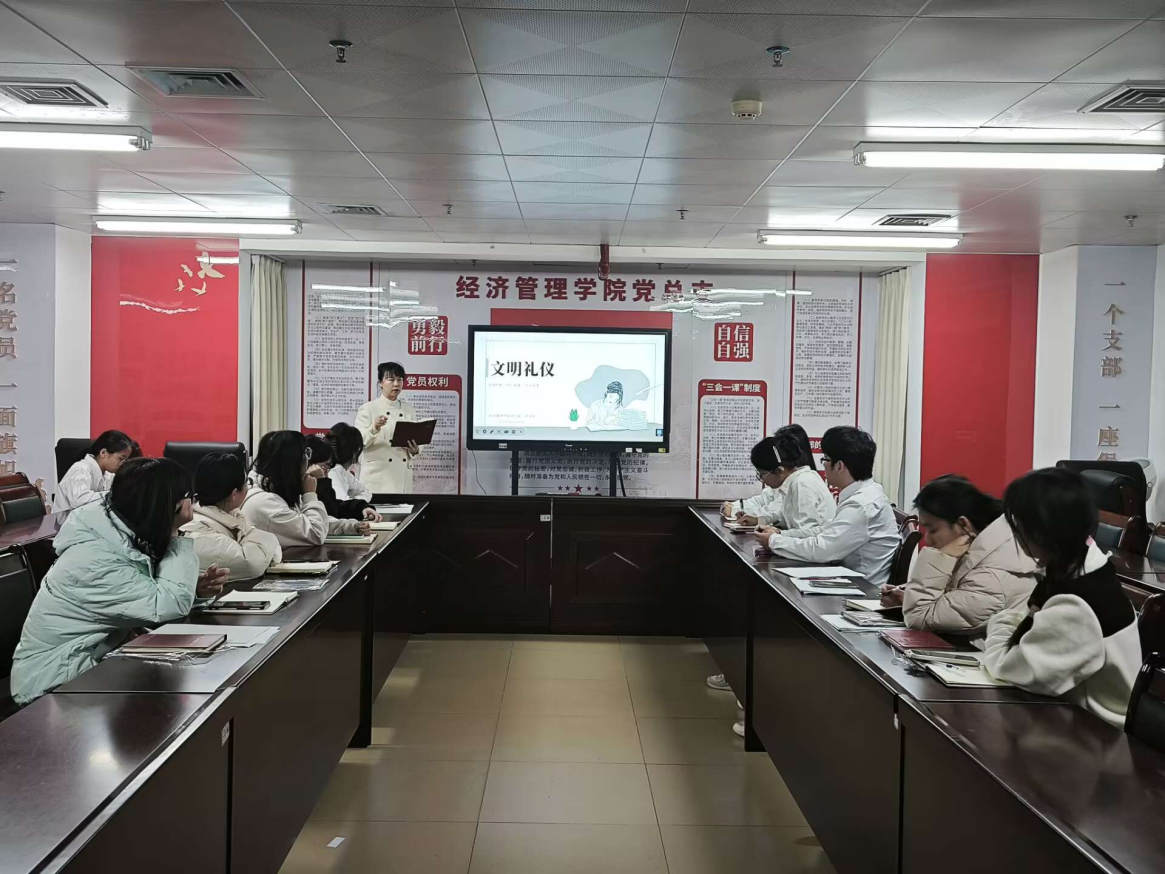 为深入落实学校文明礼仪养成行动,强化学生党员的先锋意识与模范带头作用,近期,经济管理学院各学生党支部积极响应、率先行动,组织开展了以“党员先行,礼润校园”为主题的校园文明礼仪专项培训活动。本次活动旨在进一步提升学生党员的文明素养和示范引领能力,努力锻造一支文明素养高、示范作用强的党员先锋队伍,切实发挥“关键少数”带动“绝大多数”的积极作用。