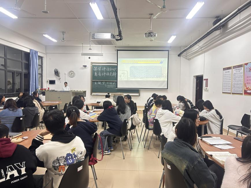 活动伊始,全体成员集中观看《本科教学工作合格评估应知应会》教学视频,系统学习评估的背景意义、指标体系及校情校规。视频内容帮助学生党员建立完整的评估知识框架,明确评估对提升教学质量、促进学生发展的重要作用。
