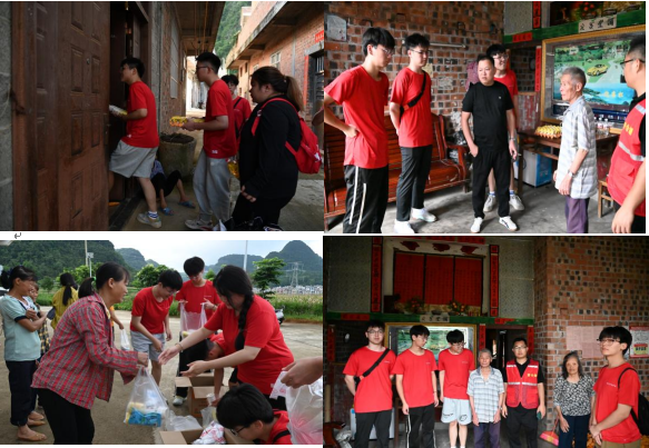 其次,实践团在驻村第一书记的带领下带上油、面条、鸡蛋等慰问物资,入户走访,走进街坊邻舍,慰问村里的脱贫户和孤寡留守老人,旨在为老人带去温暖与关怀。在入户过程中,实践团与老人们促膝交谈,听老人讲述他们过去的故事,关切地询问老人的生活、健康状况,给老人们介绍常见的防暑降温方法和注意事项,交流现场其乐融融。此次入户走访慰问是对社会主义核心价值观中“尊老爱幼”精神的生动实践,展现了新时代青年的良好风貌和积极向上的社会形象。