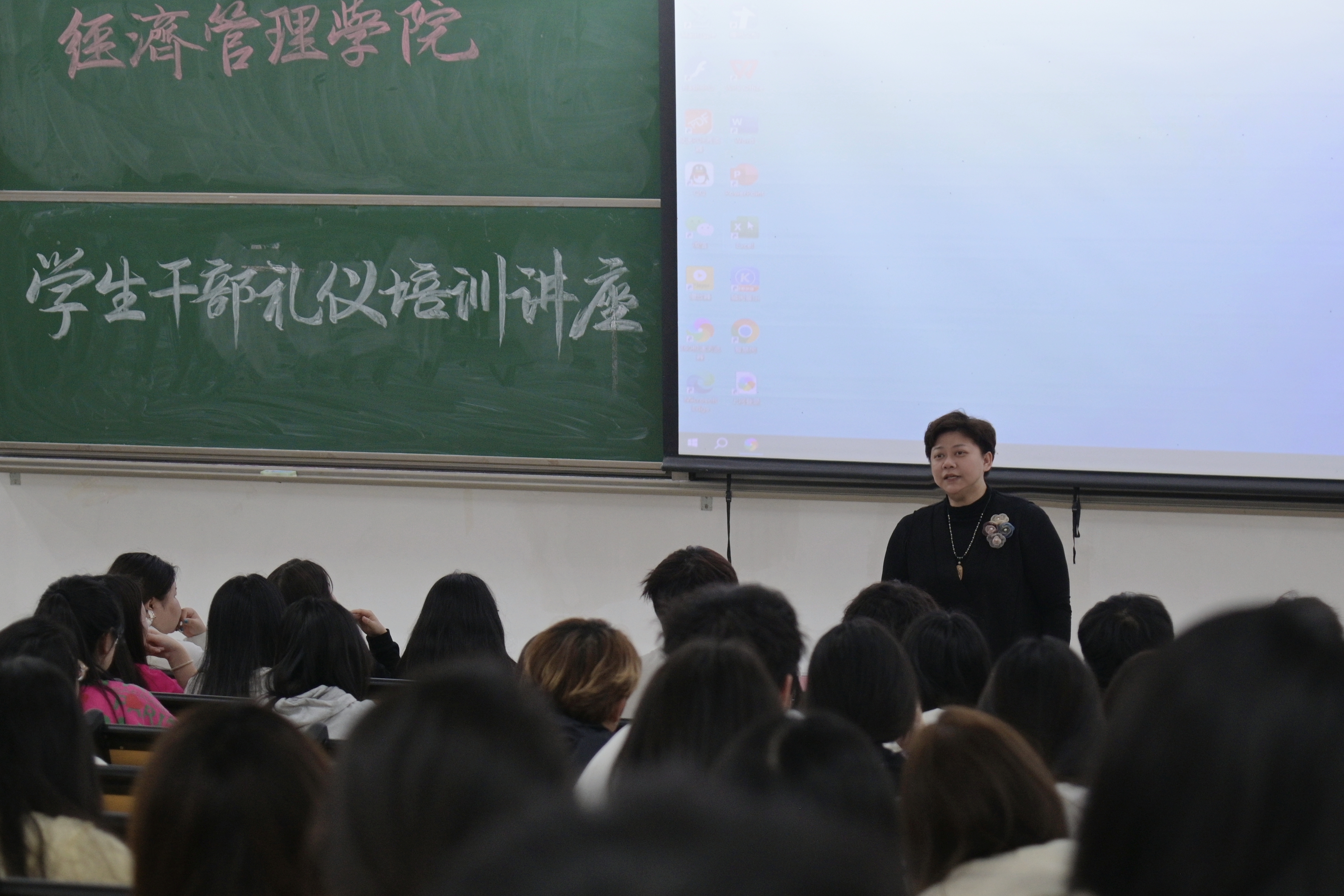 为切实提升学生干部队伍整体素质,树立“讲礼仪、重规范、作表率”的学生干部群体形象,经济管理学院精心策划“文明礼仪活动月”系列活动之学生干部礼仪专项培训。该培训于3月24日晚7时,在北校区T1-103教室如期举行,此次培训学院特邀图书与信息网络中心流通科科长林筠老师担任主讲嘉宾,由学院团委指导教师余雪梅主持,经济管理学院党总支书记洪翠笙出席,全体学生干部参加。