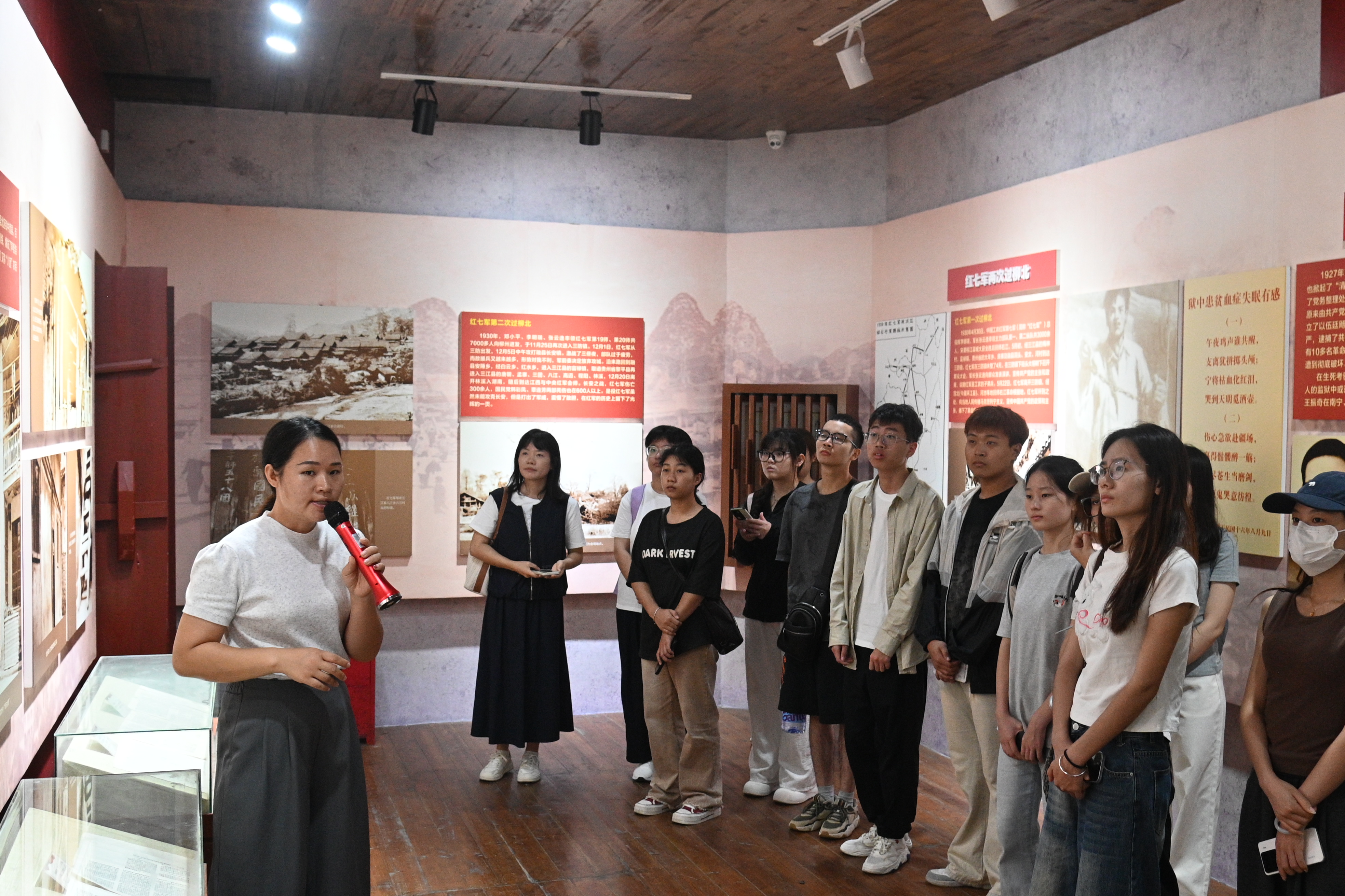 在讲解员的引导下,团干们参观了成团会议旧址。展厅内珍贵的文献史料和老照片,生动再现了革命先辈的奋斗历程。同学们专注聆听讲解,认真记录关键信息,用手机拍摄史料细节,为深入学习积累素材。
