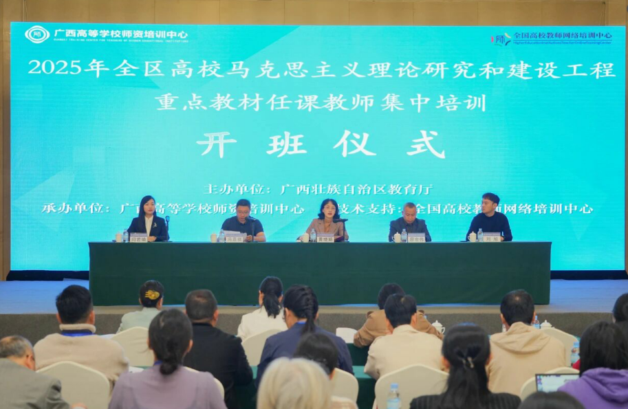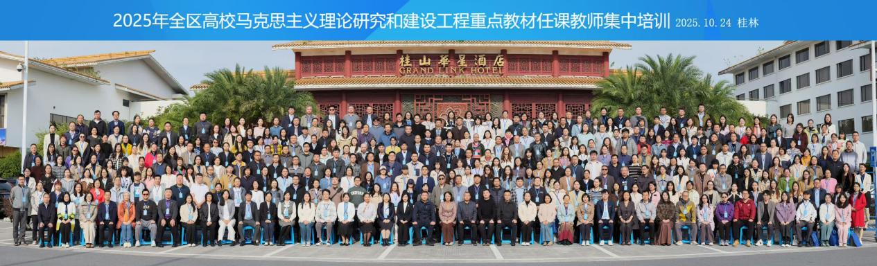 10月期间,由广西壮族自治区教育厅主办、广西高等学校师资培训中心承办的“2025年全区高校马克思主义理论研究和建设工程重点教材任课教师集中培训”在桂林桂山华星酒店圆满举办。经济管理学院选派5名教师参训,其中4人参与《管理学(第二版)》课程学习,1人参与《西方经济学(第二版)》课程研修。通过专家引领与同行交流,参训教师进一步深化了对马工程教材的理解,提升了教材应用能力。