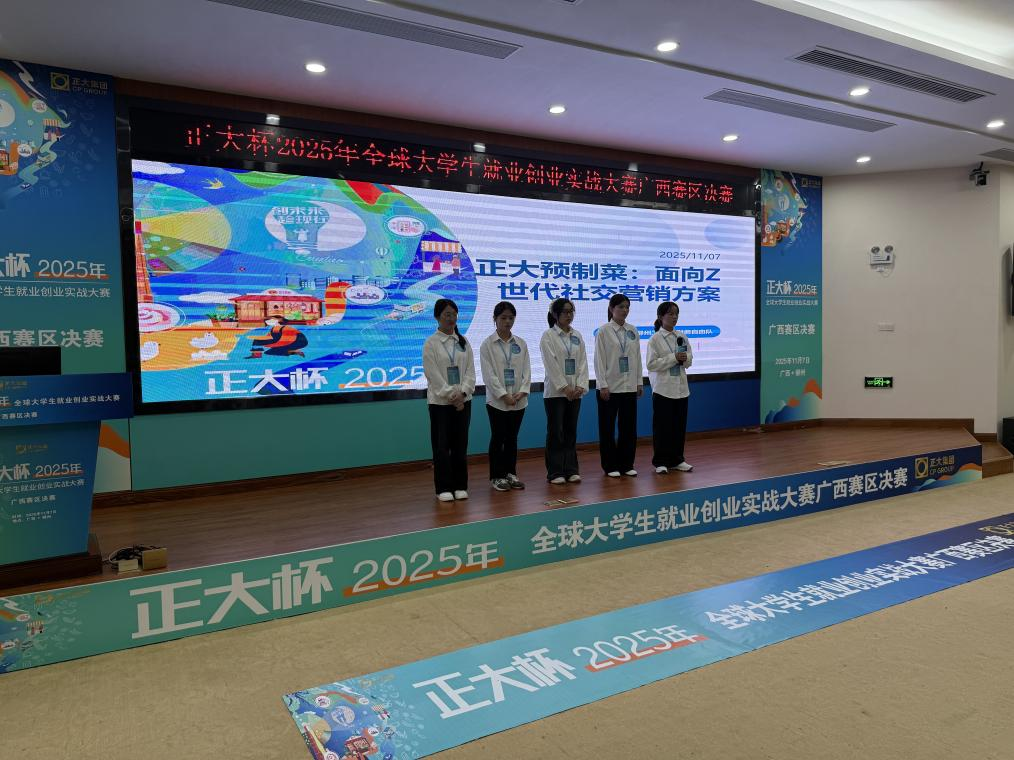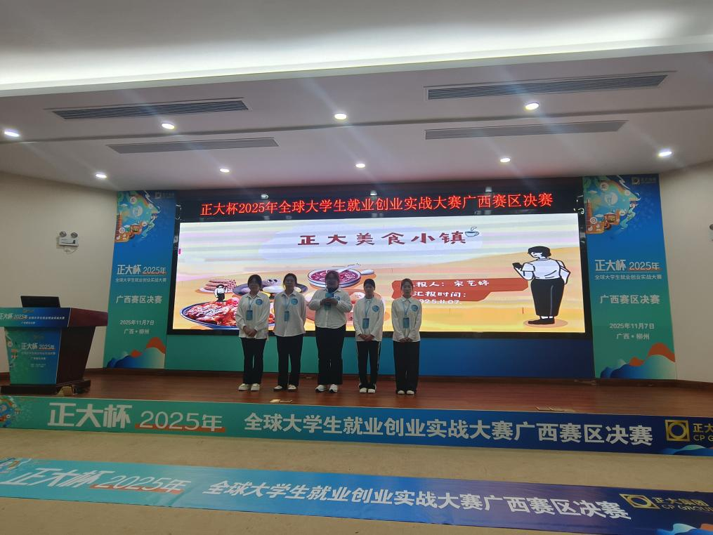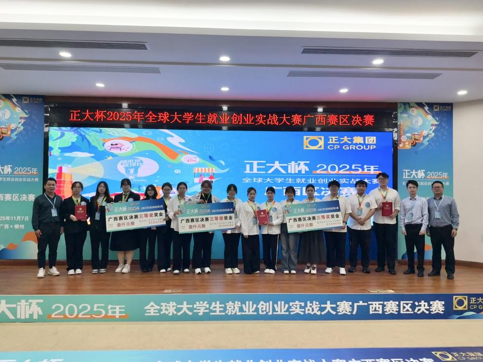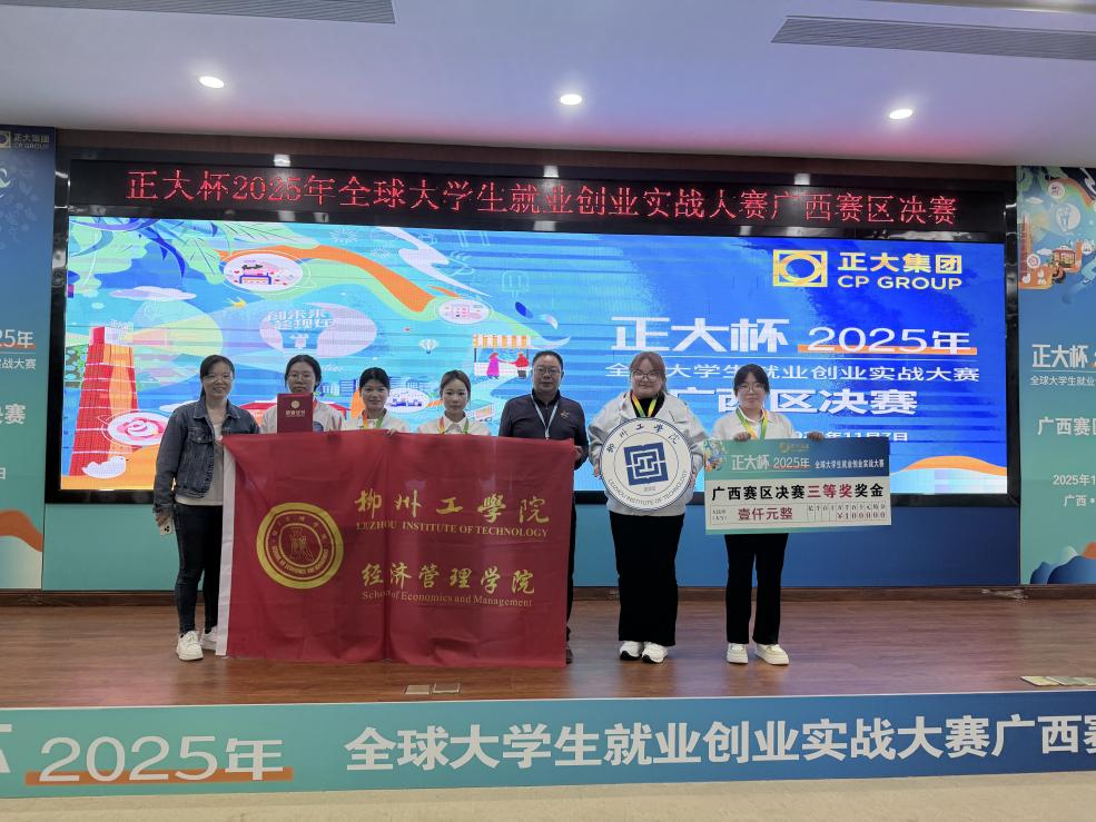 11月7日,“正大杯”2025年全球大学生就业创业实战大赛广西区决赛在广西科技大学圆满落幕。柳州工学院经济管理学院选派的“财务自由队”与“雨天淋湿格子裤”两支参赛队伍表现优异,顺利通过预选赛进入决赛。其中由朱庆宇同学带领的“雨天淋湿格子裤”队荣获广西区三等奖。