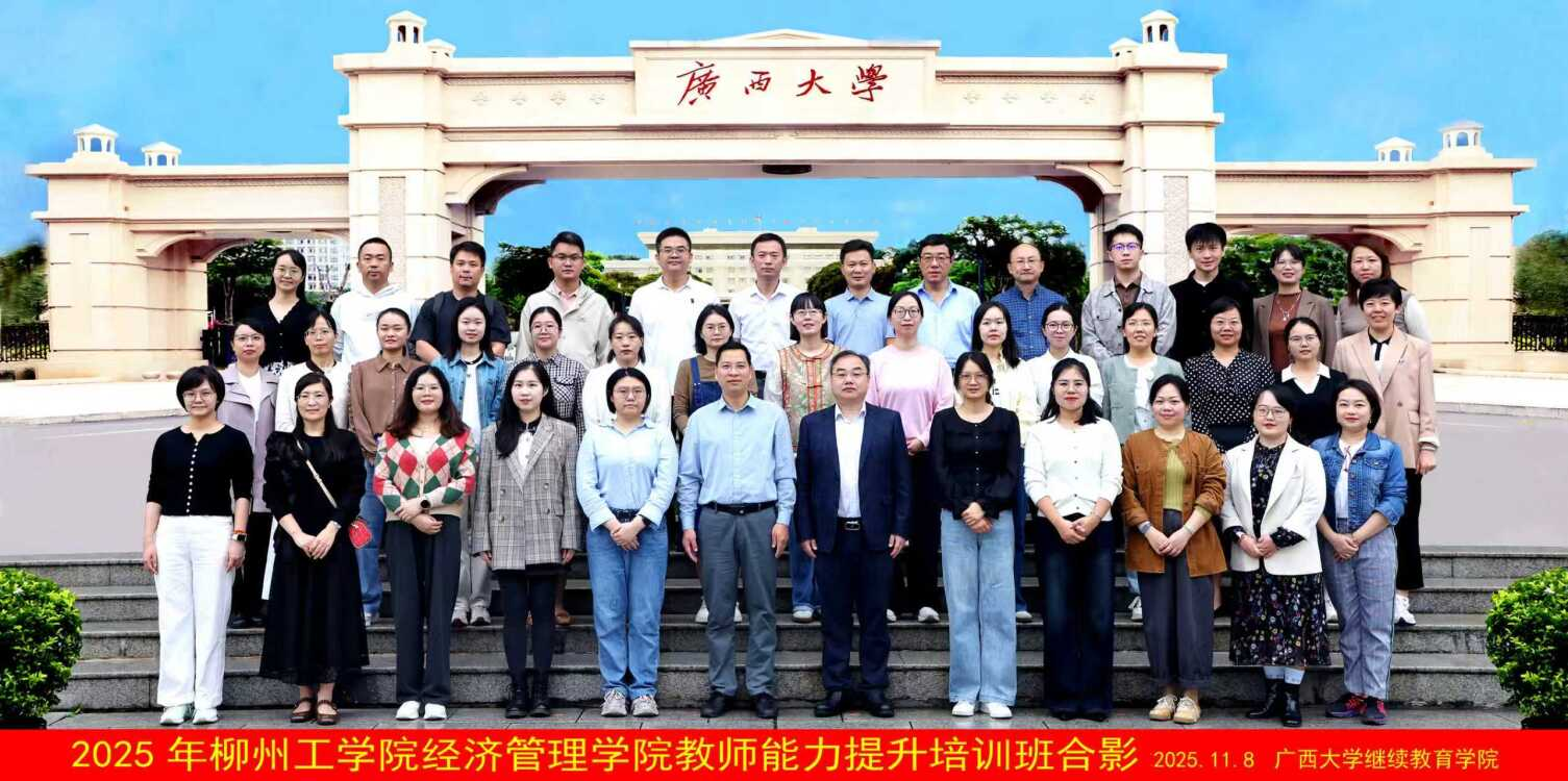 为深化高等教育改革,全面加强教师队伍建设,2025年11月7日至11日,经济管理学院组织40名教师,在副院长黄良芳的带领下,赴广西大学开展为期五天的教师能力提升专项培训。本次培训聚焦数字素养提升、教学模式创新、课程内涵建设等核心议题,为教师搭建了多元化的学习交流与实践提升平台。