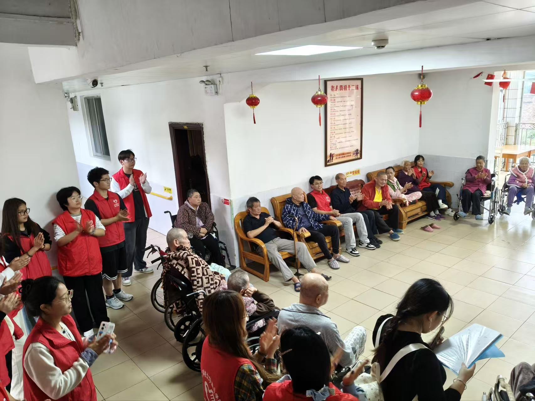 多才多艺的志愿者还为老人们带来了丰富多彩的文艺表演。悦耳的歌声、优美的舞蹈轮番上演,现场掌声阵阵,笑声不断。老人们沉浸在欢乐的氛围中,脸上洋溢着幸福的笑容。