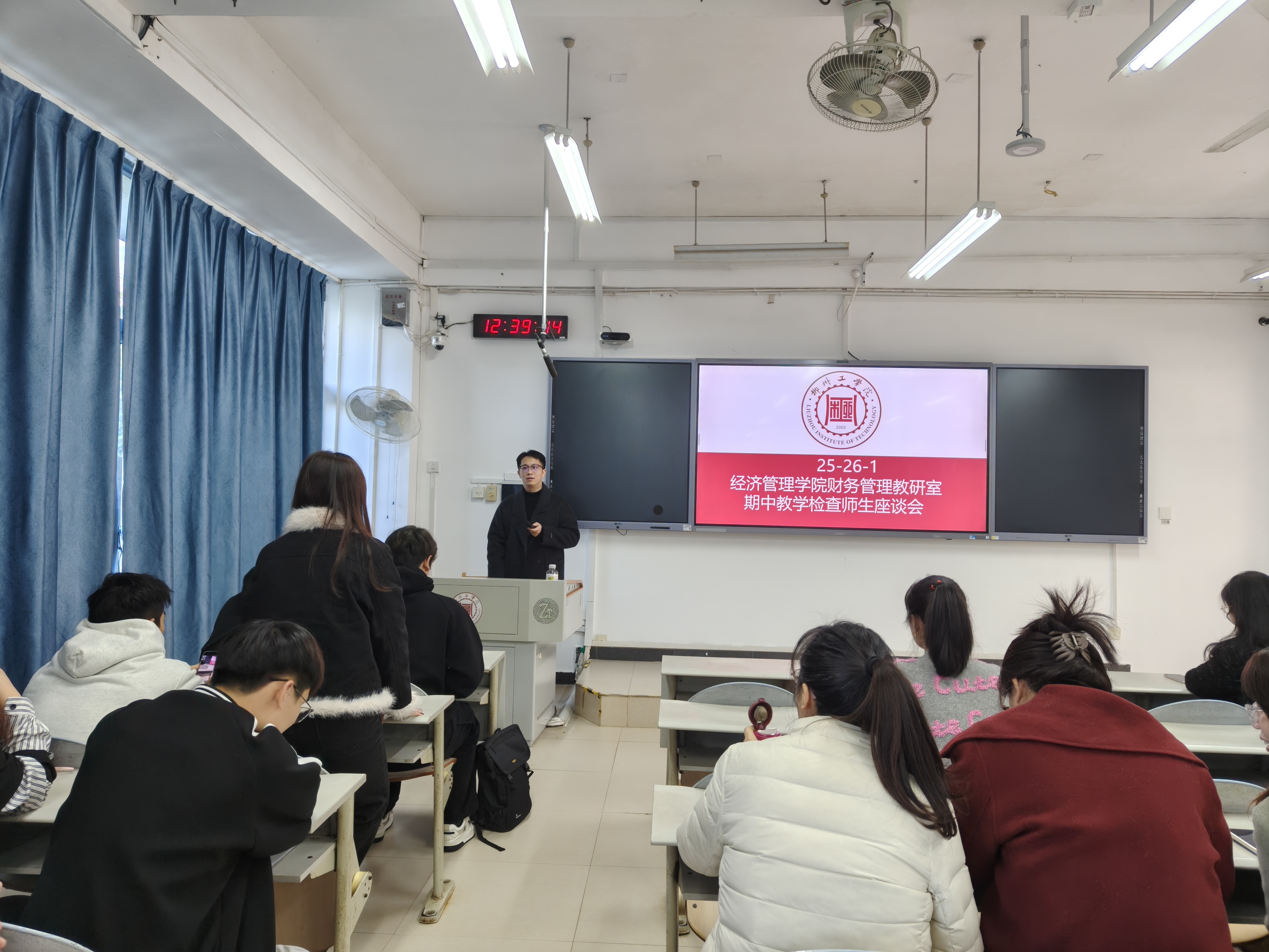 为精准对接学生发展需求,搭建高效沟通平台,11月20日,经济管理学院财务管理专业在第一教学楼201教室成功举办师生座谈会。财务管理教研室主任李斯丝、专任教师代表与各年级学生齐聚一堂,围绕学业规划、课程建设、校园服务等议题展开深入交流。座谈会由夏嘉禹老师主持。