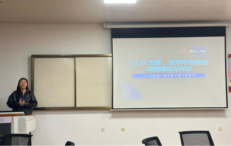 11月26日下午,雨课堂培训专场在学院实训中心204教室率先开展。平台陈老师以“AI赋能全流程教学”为核心,围绕AI课程建设、备课授课、作业批改及师生互动等关键环节展开讲解,重点演示了如何运用AI功能搭建个性化课程体系、建设课程资源库,并通过“师—生—机”三方联动优化授课流程。此外,陈老师还详细介绍了AI学伴的功能应用,帮助学生实现自主学习过程中的精准指导。