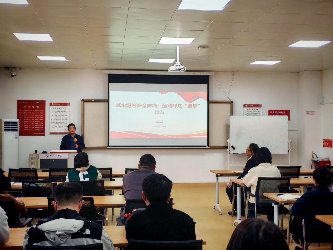 为进一步增强师生网络安全意识,普及“翻墙”行为的违法性质与危害,11月28日下午,经济管理学院特邀学校图书与信息中心李明华老师,面向全院教职工开展网络安全专项培训。本次培训旨在提升教职工对网络安全风险的识别与防范能力,引导其自觉抵制违法违规网络行为。