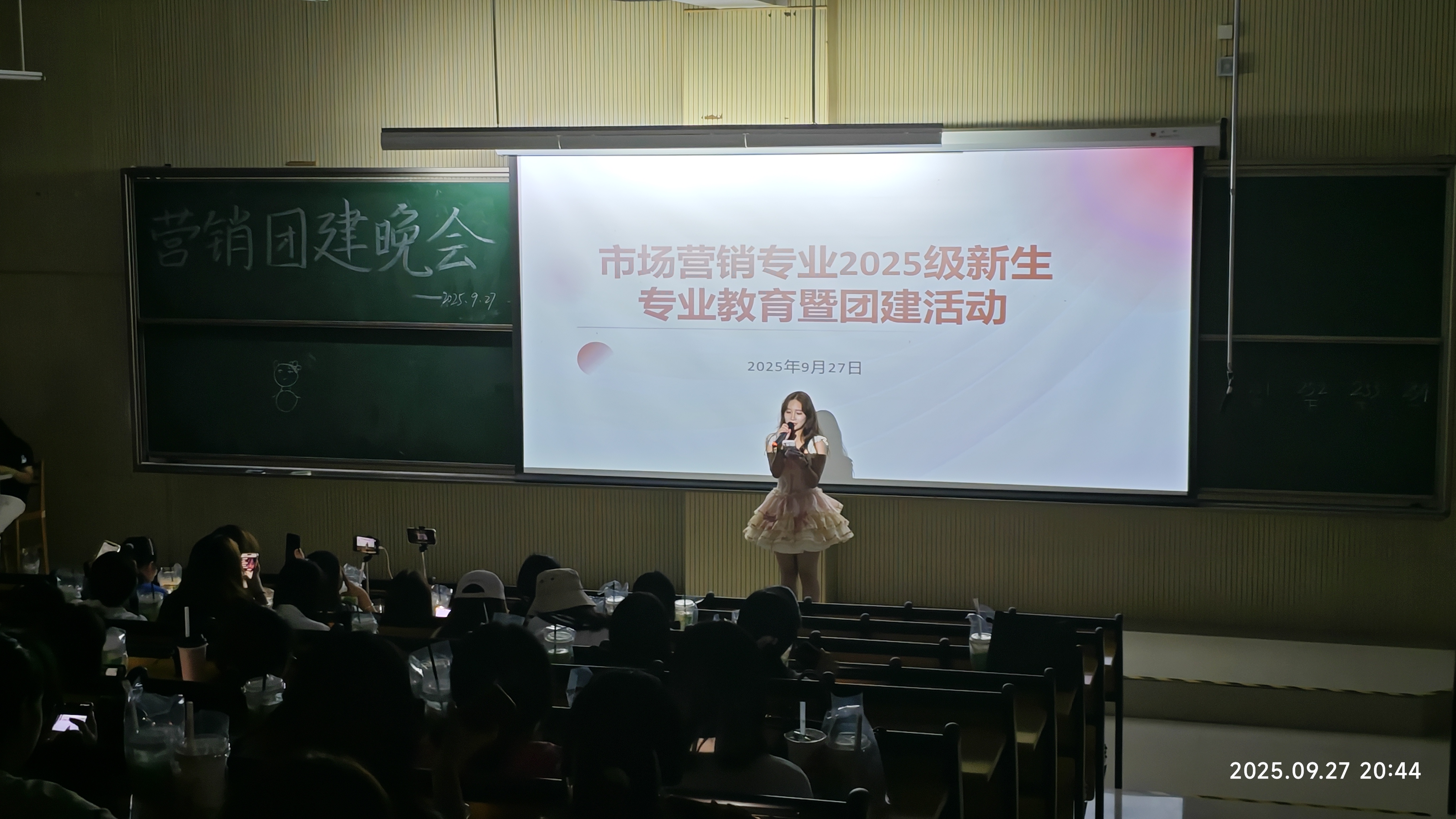 9月27日晚,经济管理学院市场营销专业2025级新生专业教育暨团建活动在T1-101阶梯教室举行。市场营销教研室主任王晖老师、辅导员黄志芳老师、各班班主任及班助与全体新生共同参与此次活动。