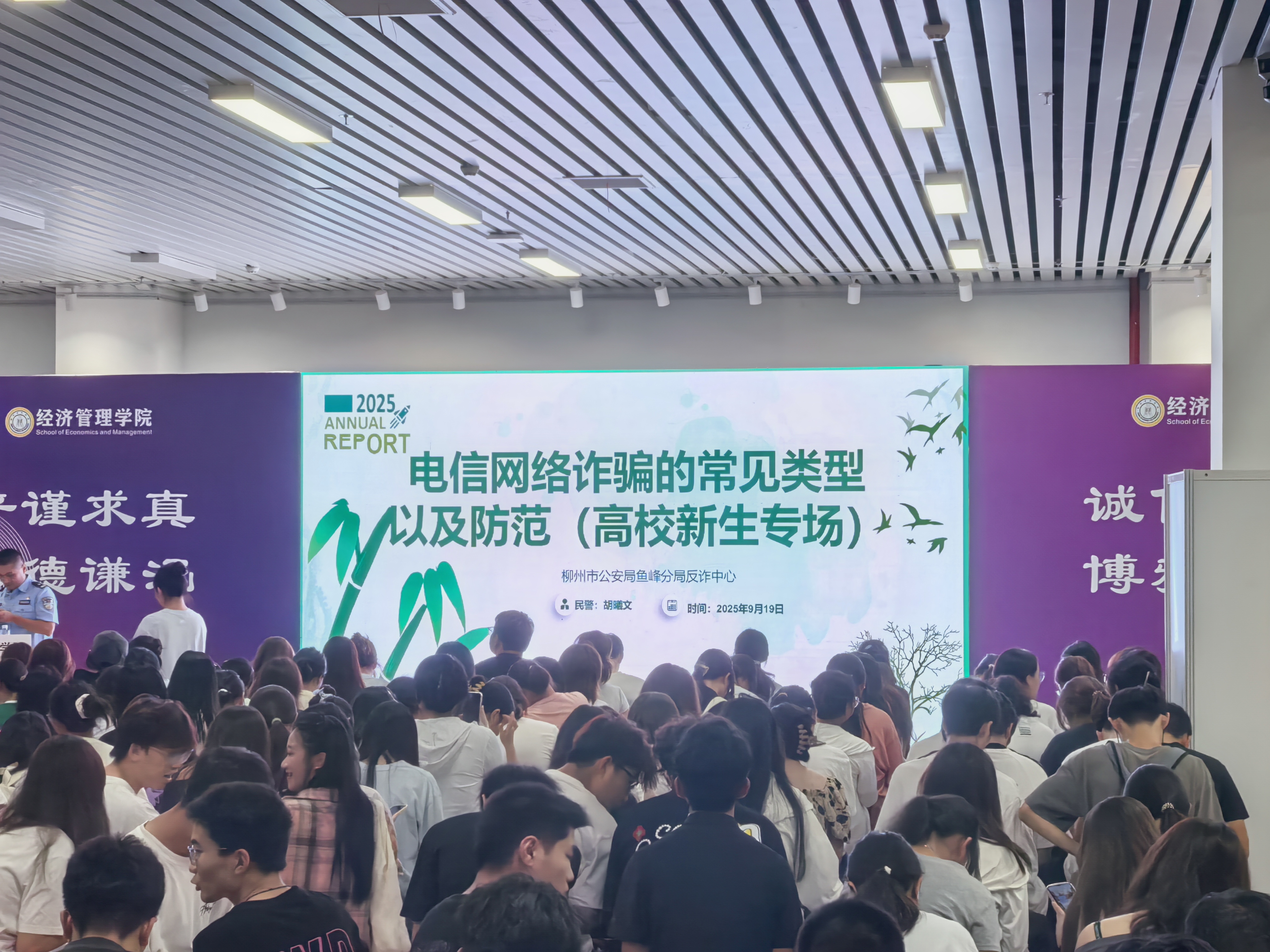学院精心构建“校—警—医—师”协同育人机制,多措并举筑牢安全防线。学生工作部通过校纪校规专题教育强化纪律意识,柳洛派出所范锡强所长以真实案例剖析提升防骗能力,柳州市疾控中心黄宝杨所长则从专业角度指导传染病防控。辅导员团队同步开展心理健康普测和主题班会,全方位守护新生身心健康。