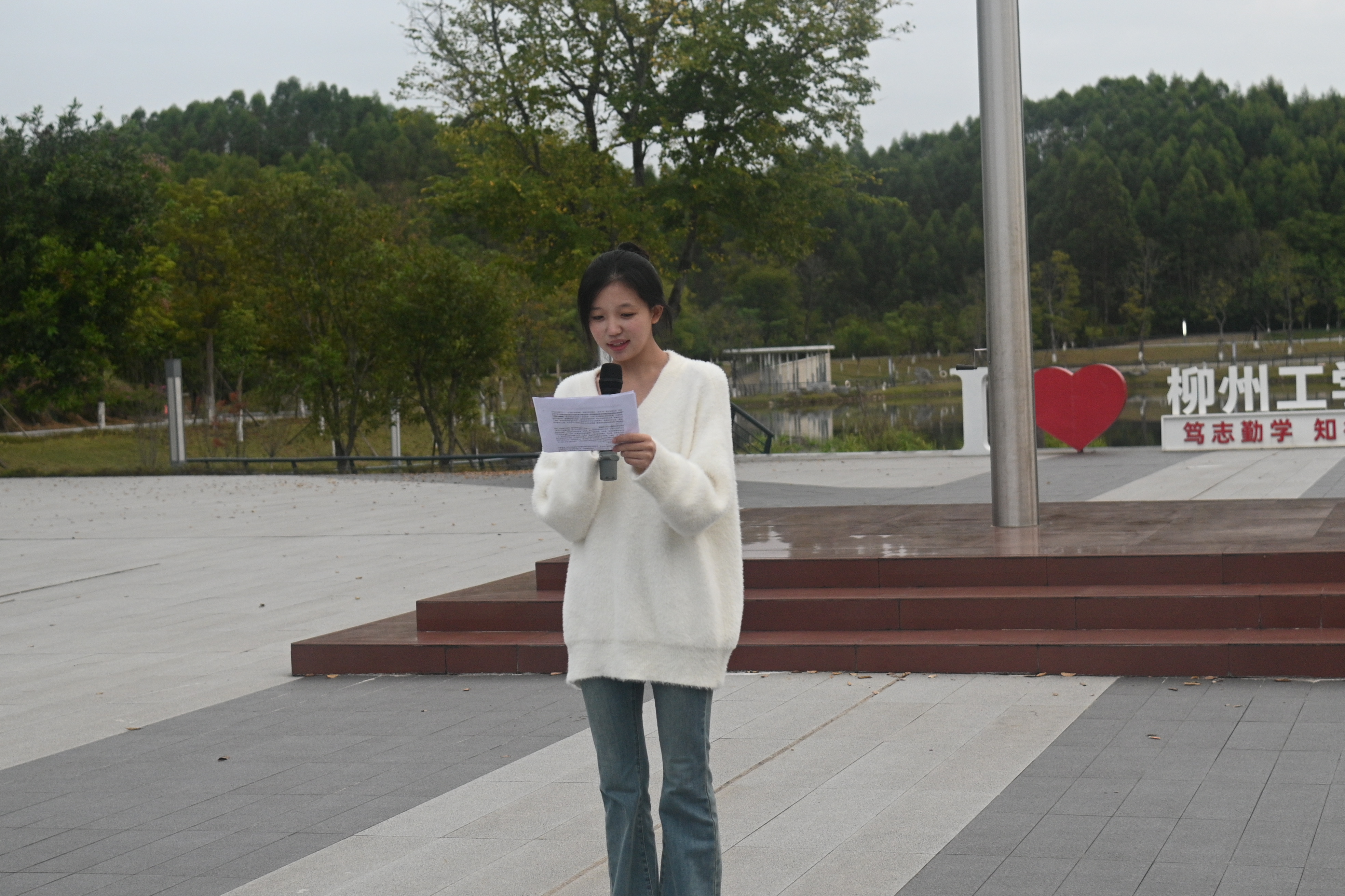 在国旗下讲话环节,经济管理学院学生代表财务251班曹诗若同学向全体同学发出倡议。她呼吁大家将爱国之情转化为实际行动,以主人翁的责任感和使命感,积极投身学校本科教学合格评估工作,在日常学习生活中展现经管学子勤学善思、求真务实的优良学风,彰显新时代青年的责任担当。