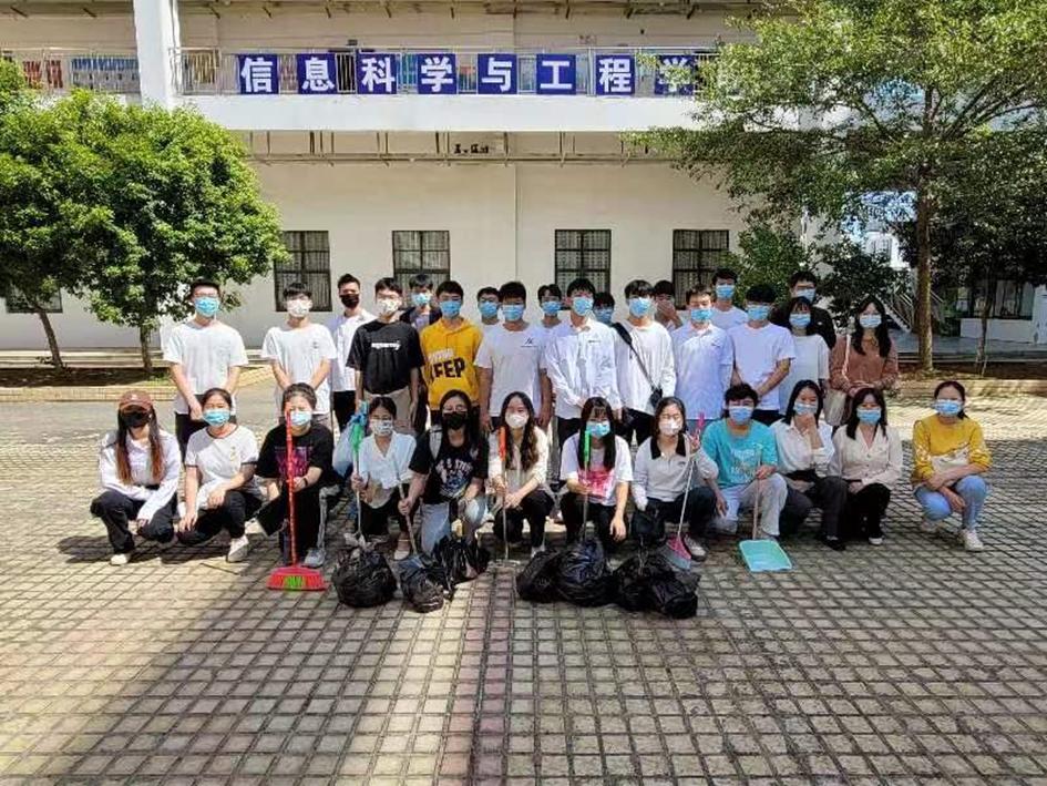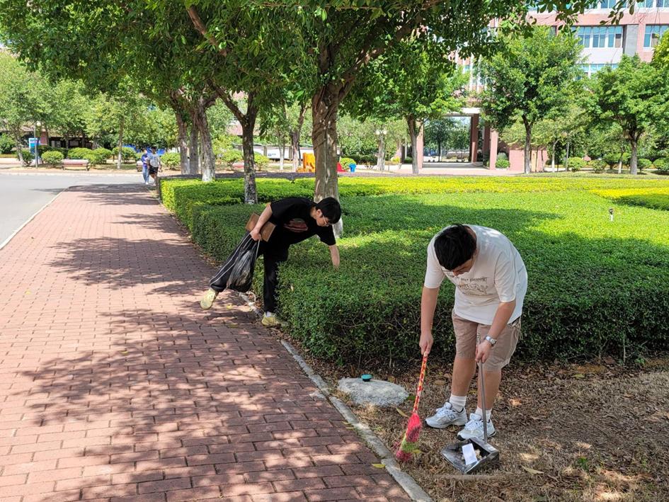 党的二十大开幕会结束后,观看现场的全体党员开展了以“环境卫生清洁行动”为主题的党日活动,充分体现了党员先锋模范作用,并弘扬实干作风。大家纷纷拿扫帚、捡拾器等工具清扫路面垃圾、捡烟头、拔杂草,美化校园环境。