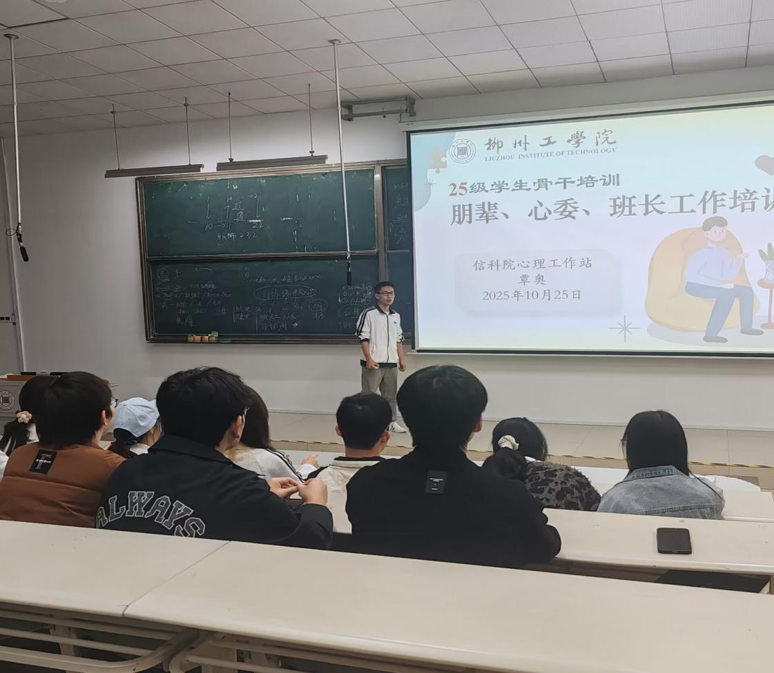 为提升2024级及2025级班级心理委员的工作能力,学院心理工作站站长覃奥在一教阶一教室为10月25日开展2025级心理委员专项培训,首期“工作职责篇”课程顺利举办。
