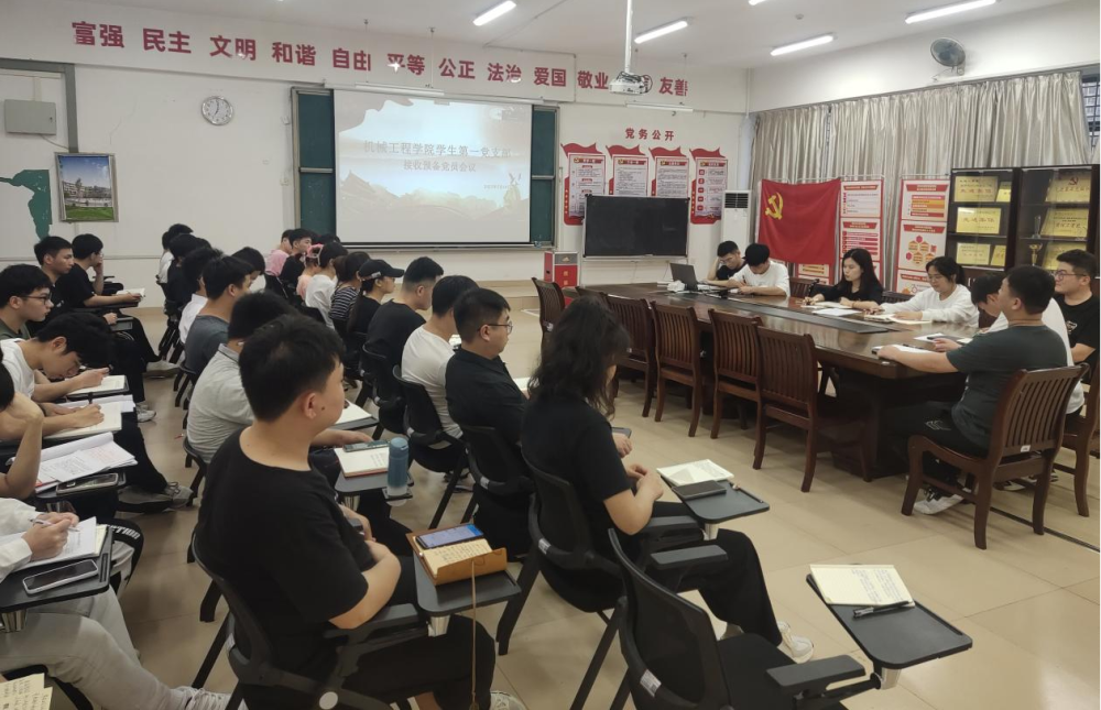 5月18日晚上18时30分,机械工程学院学生第一党支部在党员活动室召开支部大会,讨论接收易翔、郭俊怡、倪迎、阮煜杰、马茂生、刘小亮6名发展对象为中共预备党员的相关事宜。会议由机械工程学院学生第一党支部支委张恒嘉同志主持。