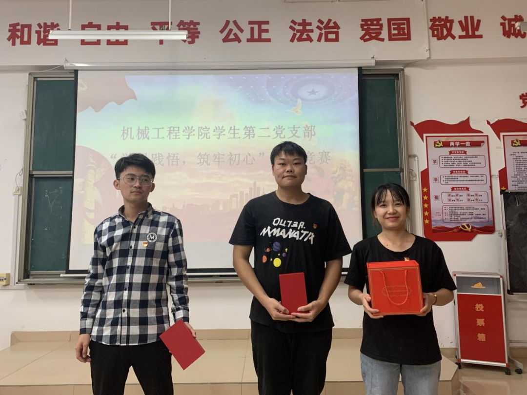 为深入学习贯彻习近平总书记在党的二十大开幕会的讲话精神,努力提高支部党员思想品质,进一步拓展教育实践活动成果,增强党组织的创造力、凝聚力。机械工程学院学生第二党支部决定将于2022年10月29日在机械工程学院党员会议室举办“学思践悟,筑牢初心”知识竞赛。本次活动由党建助理杨永奇主持。