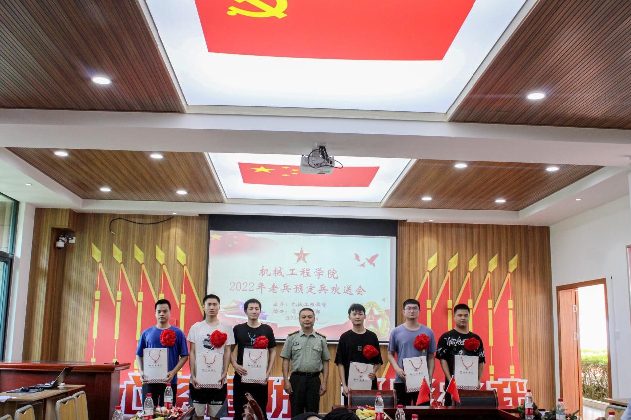 6月24日下午14:30,我院在1教102征兵工作站联合学生工作部举行机械工程学院2022届老兵预定兵欢送会,为即将奔赴军营的新兵和走向社会的老兵送行。机械工程学院党总支书记别远刚、校人民武装部副部长李明、学生工作部副部长黎柳燕、学院全体辅导员一同参加欢送会,本次欢送会由党总支副书记张斌主持。