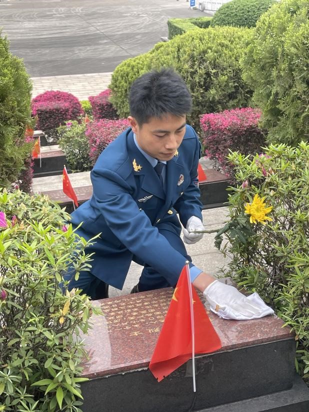 大家依次瞻仰烈士墓,献上手中的小白花。并手持抹布,怀着无比敬仰的心情,仔细擦拭着每一块烈士墓碑。墓碑上的文字记录着革命先烈的英勇事迹和牺牲精神,而师生们的每一个动作都透露出对革命先烈的无限敬仰和深切缅怀。