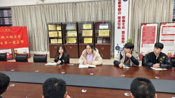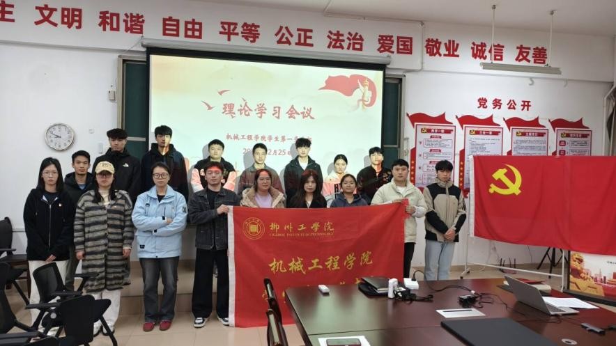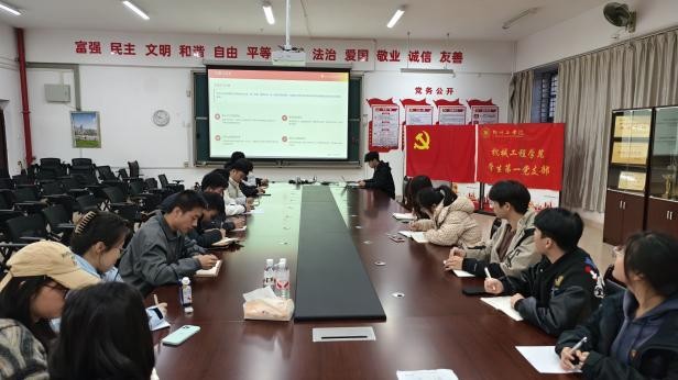 2025年12月25日,柳州工学院机械工程学院学生第一党支部在第一实训楼党员会议室召开支部党员大会。本次会议主要围绕深入学习党的二十届四中全会精神及学习《习近平谈治国理政(第五卷)》相关内容,同时对本支部期末工作进行相关安排。