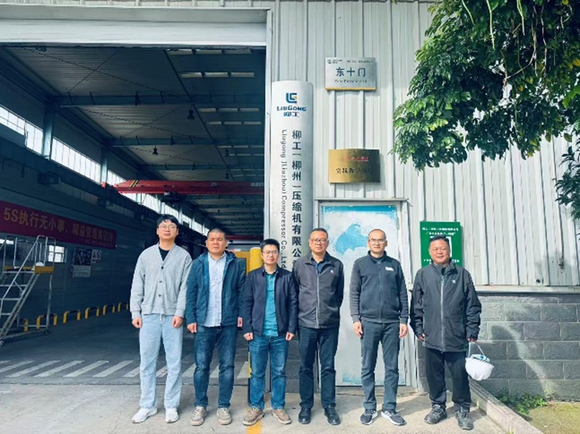 为深化校企合作,推动产教融合,2025年11月11日上午,柳州工学院机械工程学院机械设计制造及其自动化教研室主任李福送、工业机器人教研室主任王文军,骨干教师代表孙云飞和罗章老师一行前往柳工(柳州)压缩机有限公司,开展校企合作交流活动。柳工(柳州)压缩机有限公司江科总经理、综合业务总监蒋婧和工会主席梁世军等热情接待了我院教师团队,双方共同为校企合作实践基地挂牌,正式开启深度合作新篇章。