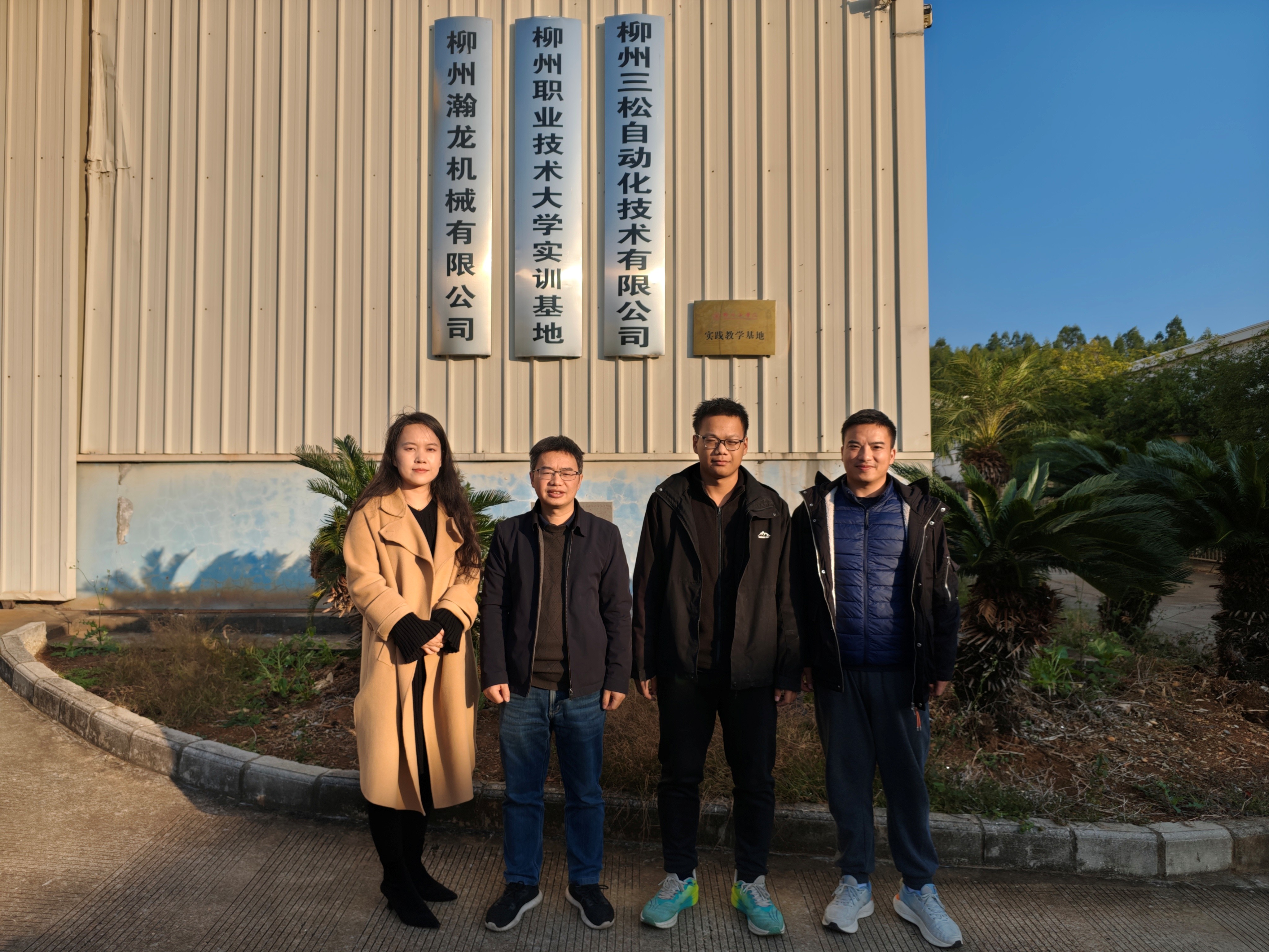 为深入推进产教融合,创新应用型人才培养模式,2025年12月25日下午,柳州工学院机械工程学院机械设计制造及其自动化教研室主任李福送、骨干教师代表尹帅和虞正山老师一行前往柳州三松自动化技术有限公司,开展校企合作交流并探望在企校友。柳州三松自动化技术有限公司董事长劳淞及综合业务部经理韦海迪等人对学院教师团队的到访表示热烈欢迎,双方共同为校企合作实践教学基地挂牌,标志着双方合作进入实质性深化阶段。