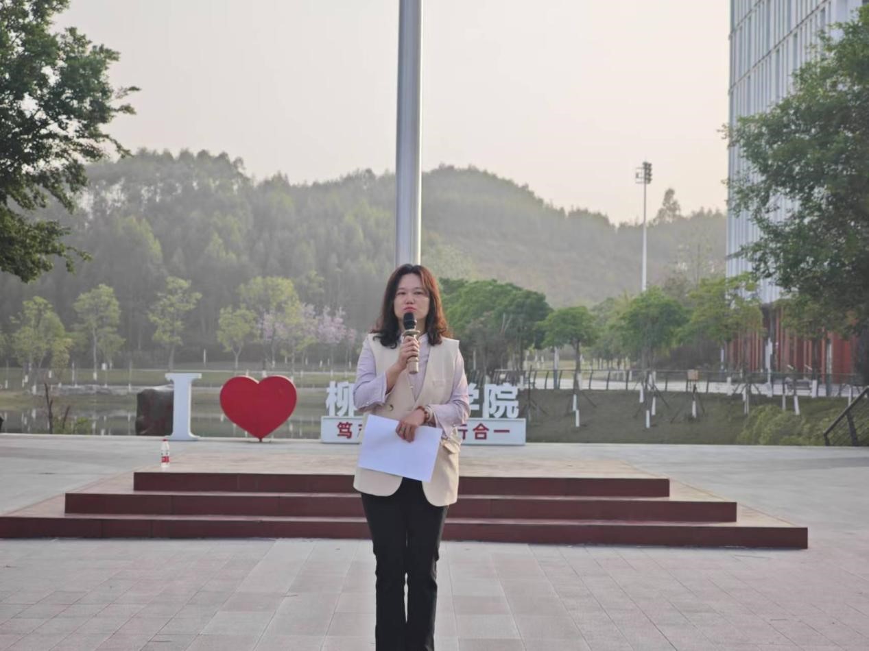 2025年4月14日,柳州工学院机械工程学院于北校区举行升旗仪式。本次升旗仪式以“扬学风之帆,筑评估之基”为主题,机械工程学院党总支书记王丽、辅导员姚通准老师、张金凤老师、韦玉芳老师及学院全体24级学生共同参加本次升旗。本次升旗仪式由朱嘉佳同学主持。
