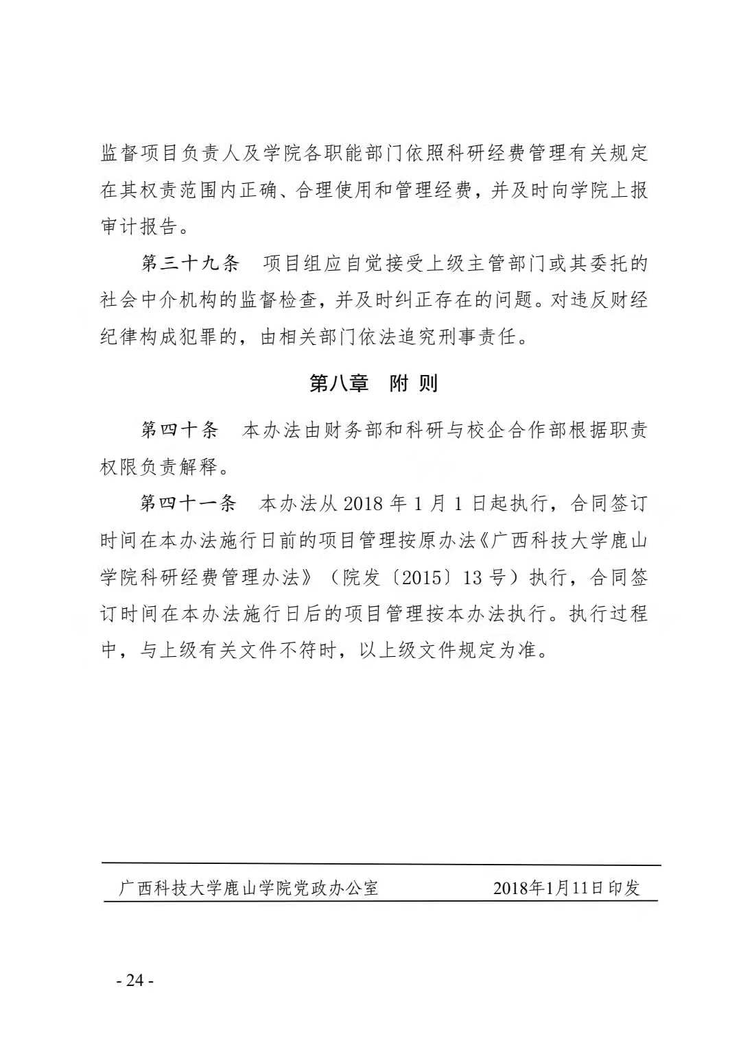 关于印发《广西科技大学鹿山学院科研项目及经费管理方法》的通知