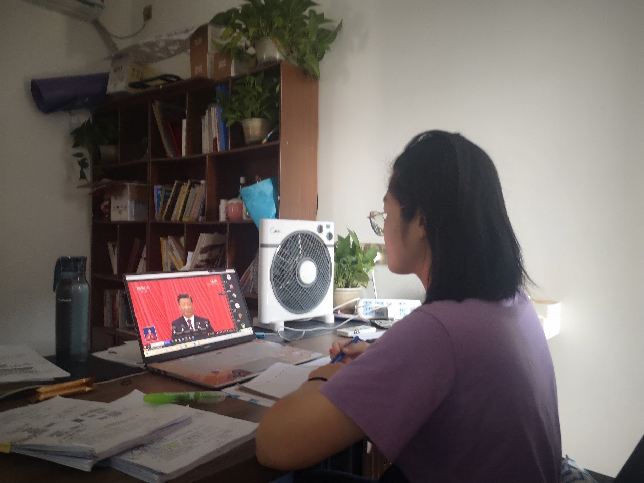 马克思主义学院教师罗心表示:“101年前,也就是1921年7月,当时平均年龄只有28岁的13个人,在上海、嘉兴召开中国共产党第一次全国代表大会,参会代表13名,代表着全国50多名党员。这个有坚定信仰的党逐渐发展壮大。在这个党的领导下,中国人民经过28年艰难卓绝的奋斗,推翻了三座大山,建立了新中国。今天,中国共产党召开第二十次党代会,参会代表是2296名,代表全国9000多万名党员,代表14亿中国人民,这个党就是全心全意为人民服务的、伟大的中国共产党!我们要深刻领悟“两个确立”的决定性意义,坚定“四个自信”,不忘初心,牢记使命,紧跟党走!撸起袖子加油干,我们必将实现中华民族的伟大复兴!”