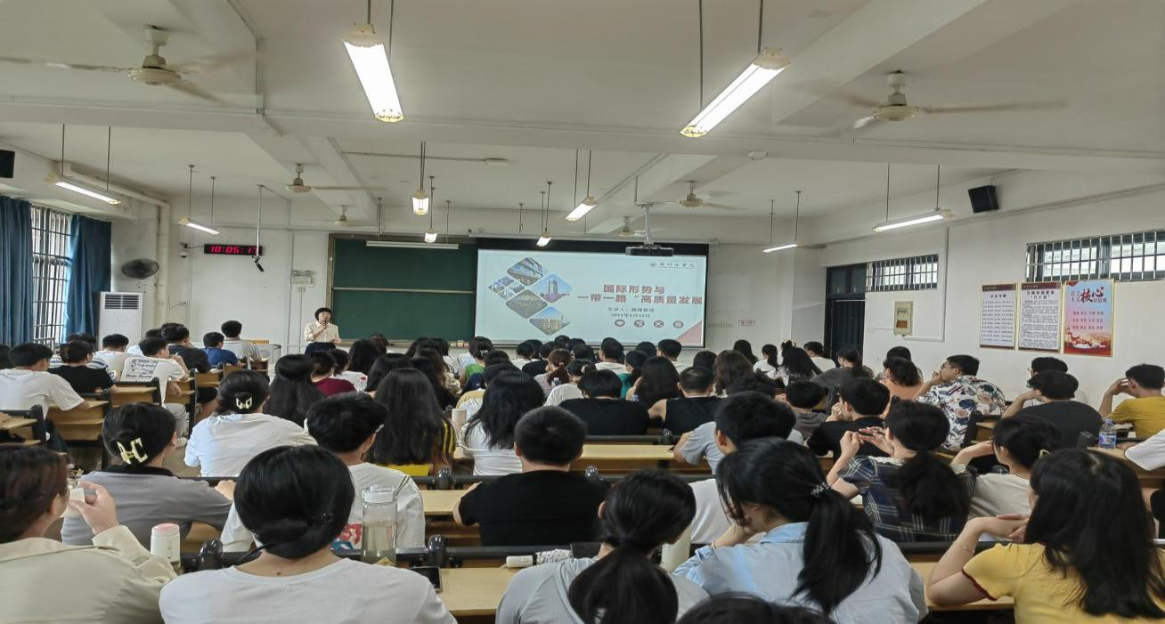 图片3.魏锋副校长讲授《国际形势与“一带一路”高质量发展》“形势与政策”课