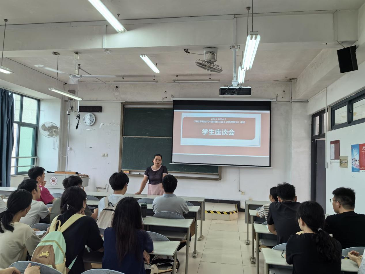 为了进一步提高教学质量,总结前期教学经验,促进师生交流共建,倾听广大师生对《习近平新时代中国特色社会主义思想概论》教学工作的意见建议,习近平新时代中国特色社会主义思想概论教研室分别于2024年5月16日下午和5月17日下午召开了2024年春季学期期中教学学生座谈会和教师座谈会。