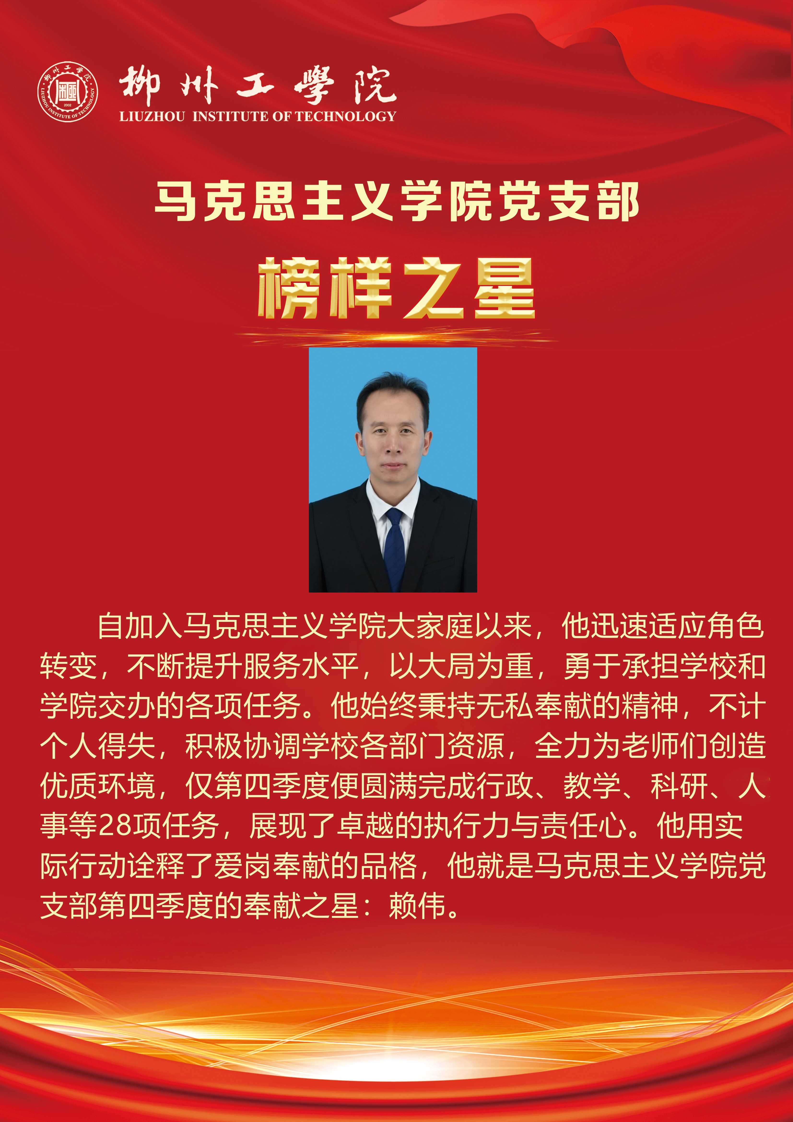 【党建动态】马克思主义学院党支部第四季度榜样之星(奉献之星):赖伟