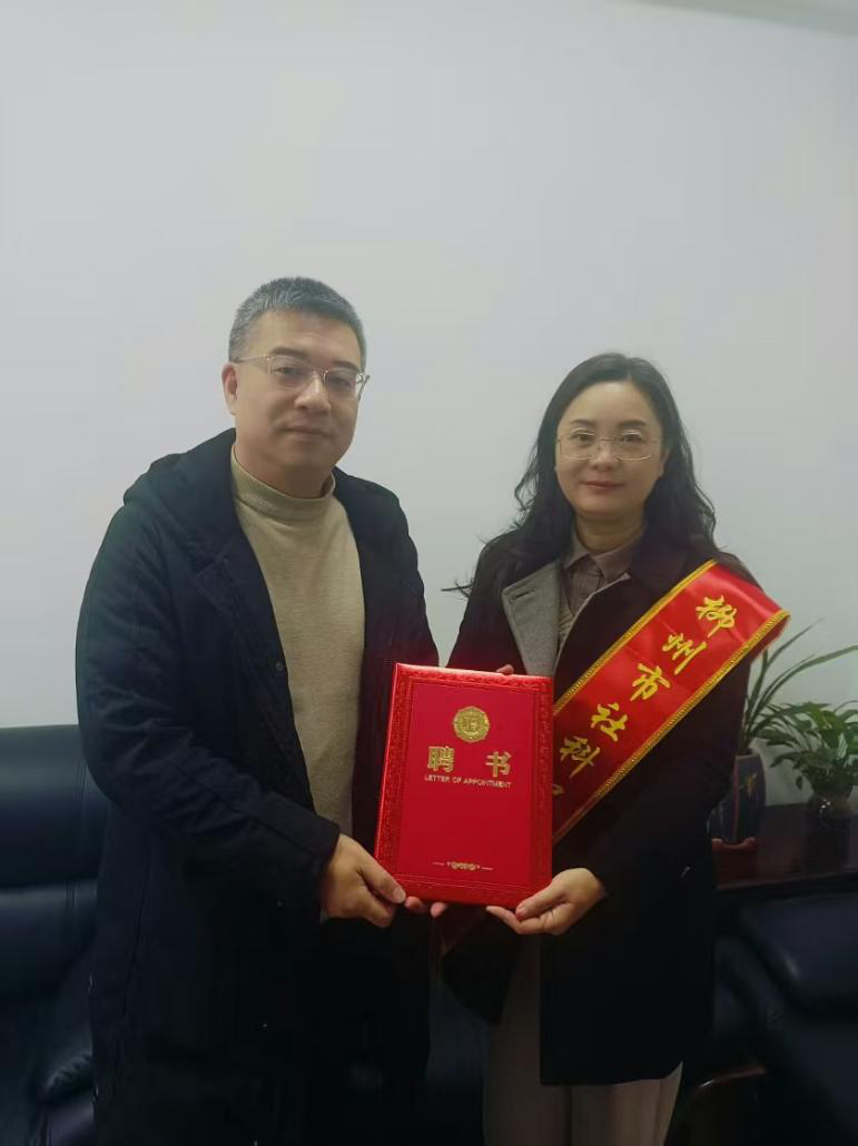 市社科联主席覃宏彬为陆丽霞颁发聘书