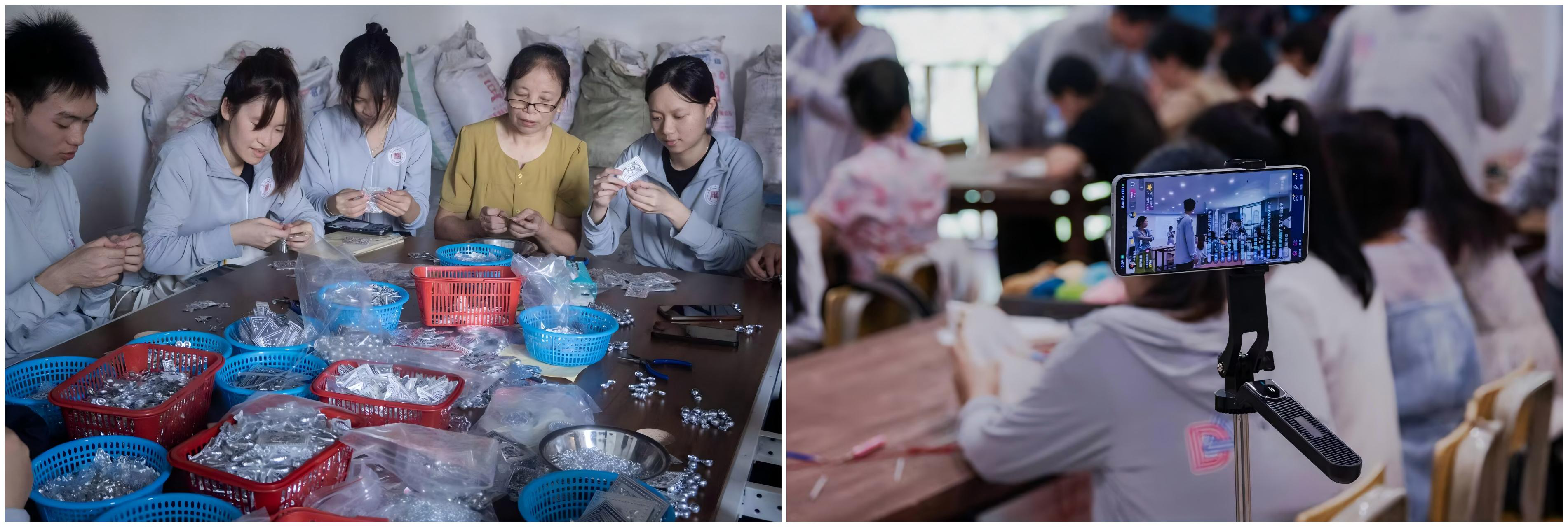 活动期间,实践团聚焦“非遗活化”与“乡村赋能”,将马克思主义实践观与创新创业思维相结合,开展了系列“思政+双创”实践活动。团队深入苗寨,针对当地苗族妇女开展“纹样创新+技能创业”专项培训:一方面教授簇绒、刺绣等手艺,帮助闲置劳动力掌握一技之长;另一方面引导她们挖掘传统纹样中的市场价值,将蝴蝶纹、铜鼓纹等元素融入现代生活用品设计,开发出簇绒装饰画、文创等产品。为解决“产销对接”难题,实践团还在协助妇女们学习直播带货技巧,在短视频平台展示创作过程与产品故事,助力“指尖技艺”真正转化为“指尖经济”。