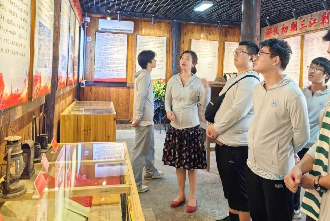 在三江剿匪纪念馆与革命烈士纪念碑前,彭曦老师为实践团带来了一堂别开生面的“行走的思政课”。她以馆藏革命文物为生动教材,通过“文物解读-精神提炼-时代传承”三个教学环节,将红色基因的传承融入乡村振兴的当代实践。在程阳八寨,她以侗族村寨的沧桑巨变为切入点,讲述了侗族人民在中国共产党领导下实现了“从解决温饱的艰苦奋斗,到文旅融合的创新发展”这一伟大历程,努力将铸牢中华共同体意识融入实践全过程。