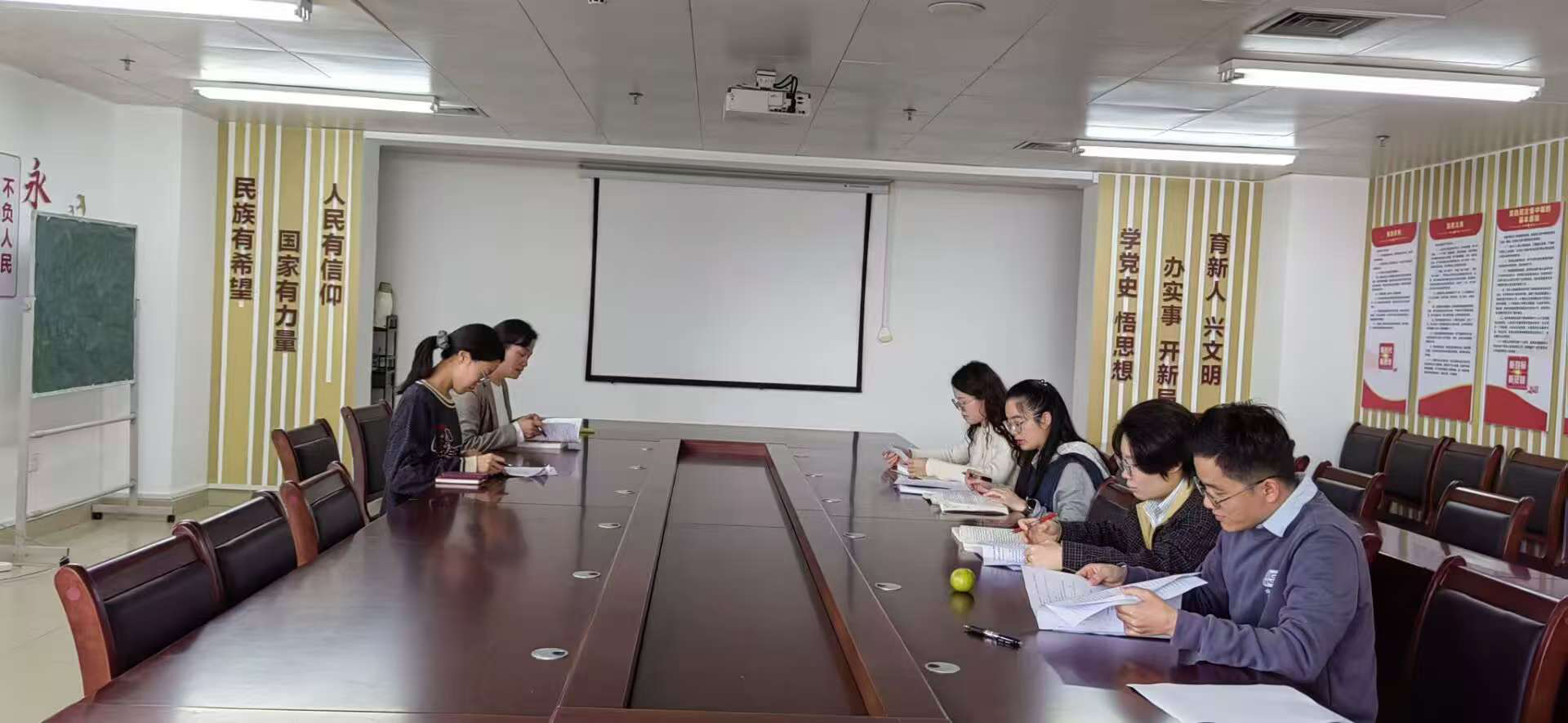 在聆听完学生代表的意见建议后,11月19日上午10点,教研室全体教师在科教楼909会议室召开了期中教学教师座谈会。会上,先由田冬霞主任就学生指出的问题依次做出具体反馈,并初步提出了改进思路。与会教师以此为基础,就学生反馈的主要问题共同探讨整改对策,重点围绕如何深化教学改革创新、提升学生理论兴趣及强化课堂纪律管理等方面展开了透彻的研讨,进一步凝聚了课程建设的共识与合力。