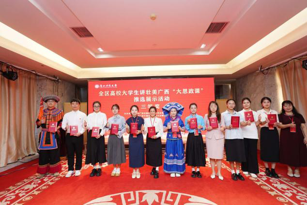 近日,自治区党委宣传部、自治区党委教育工委、自治区教育厅联合公布了2025年全区高校大学生讲“壮美广西·大思政课”比赛获奖名单。在我院教学创新团队教师的精心指导下,我院选送的学生作品脱颖而出,喜获三等奖两项,展现了我院在思政育人与实践融合方面的扎实成效。