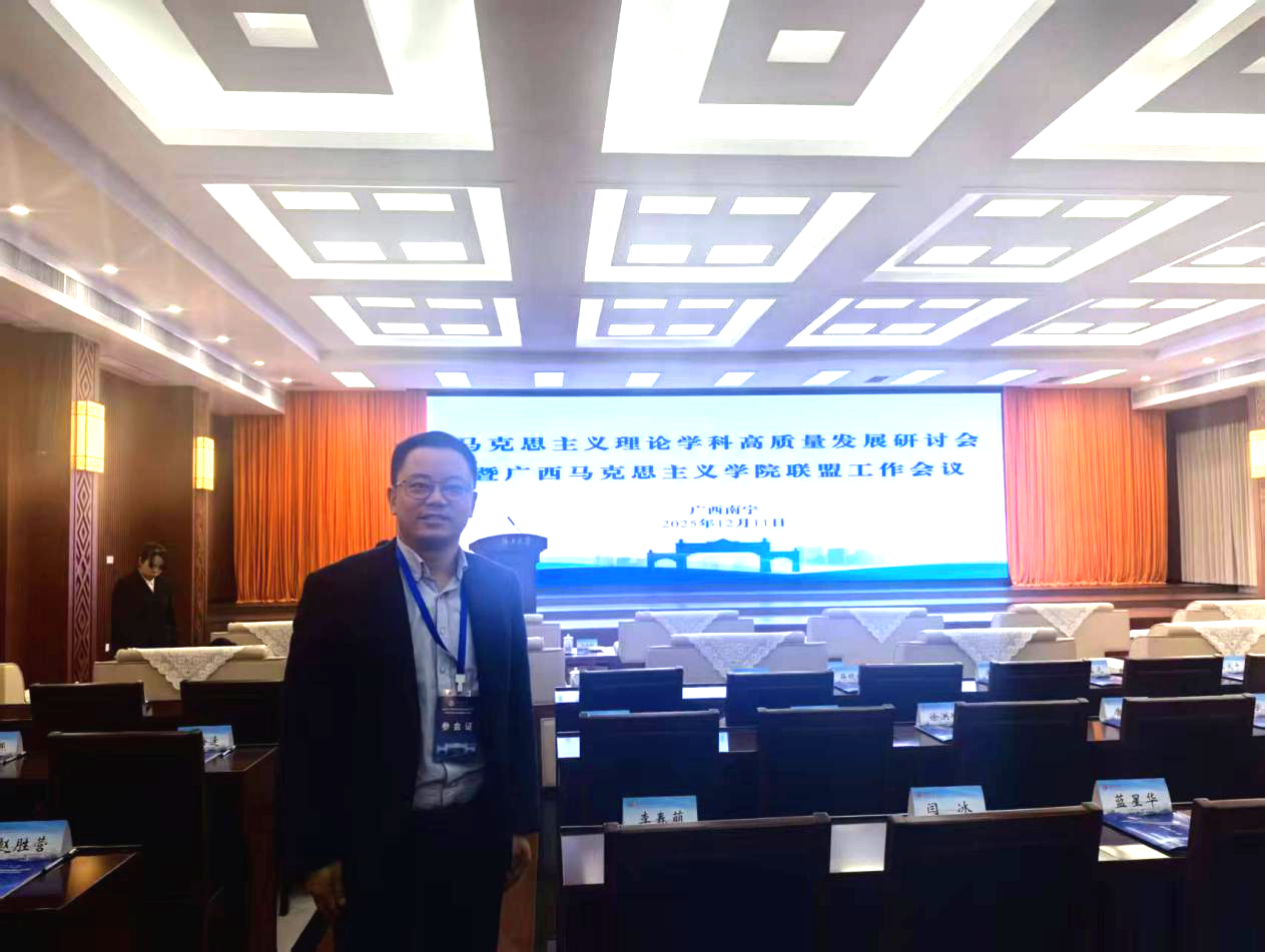 为深入推进马克思主义理论学科内涵式发展,加强区内高校马克思主义学院交流协作,12月11日,马克思主义理论学科高质量发展研讨会暨广西马克思主义学院联盟工作会议在 广西大学顺利召开。自治区党委常委、宣传部部长陈奕君,自治区教育厅领导,中共中央党校原校委委员、副教育长韩庆祥等10名国内知名马克思主义理论学科专家,全区高校马克思主义学院主要负责同志出席本次大会。学院副院长张明(主持工作)应邀参会,与全区多所高校的专家学者共商学科发展大计、共谋联盟建设新篇。