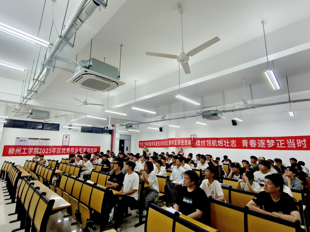 为充分发挥优秀毕业生的示范引领作用,助力在校生明确大学奋斗目标,促进学院学风建设,2025年4月21日,汽车工程学院在北校区T1-403教室顺利开展了以“榜样领航燃壮志,青春逐梦正当时”为主题的2025年广西区优秀毕业生宣讲活动。本次宣讲会由我院荣获区优毕代表李广峰、校优毕代表欧阳天宇进行宣讲。活动由学院资助办主任廖燕老师主持。