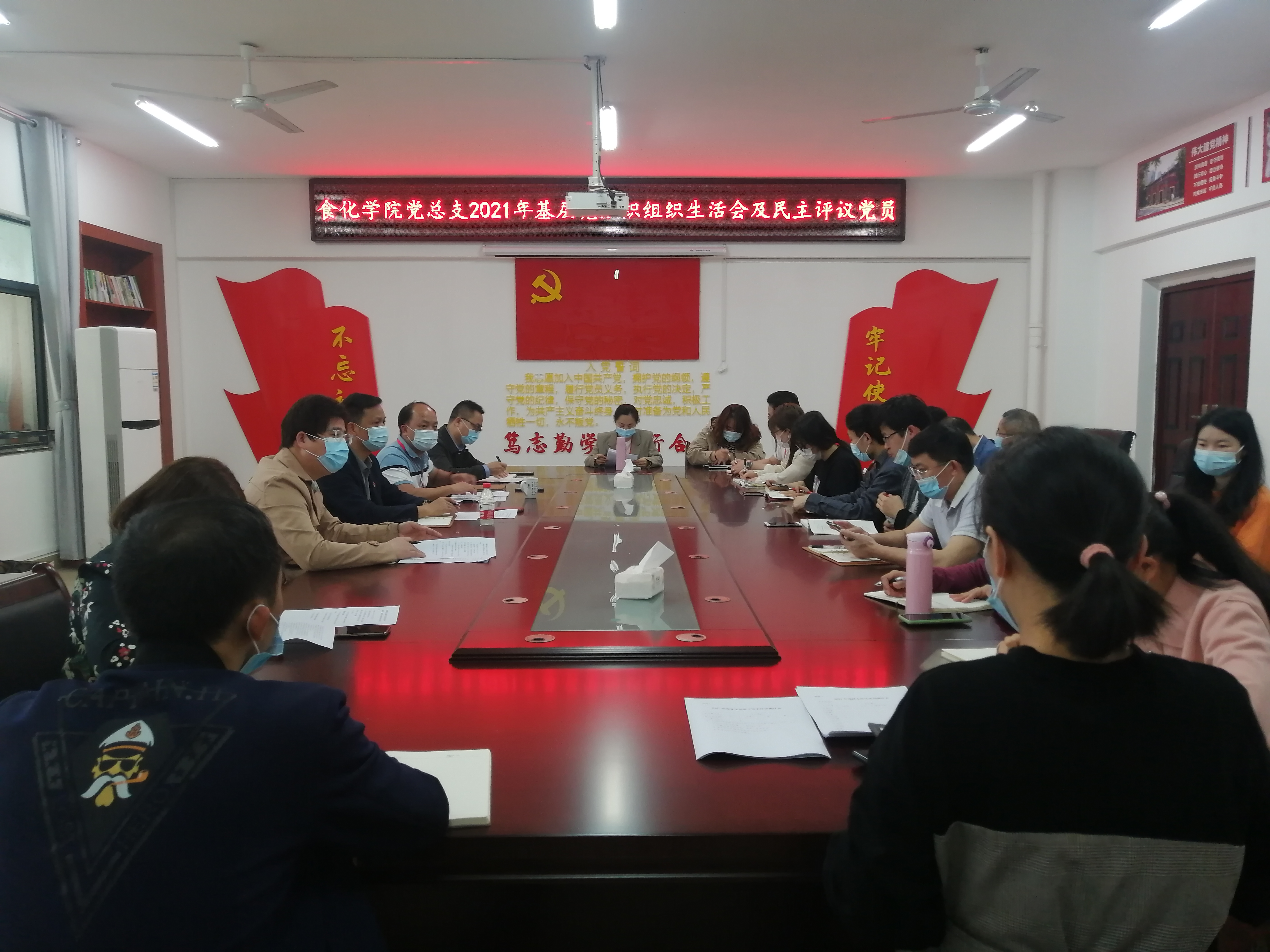 为加强我院党建工作全面建设,进一步总结经验和提升师生党员思想意识,3月14日下午2:30,食化学院党总支在党员活动室召开2021年度基层党组织组织生活会和民主评议党员大会,学校党委委员、副校长郑燕升到会指导,出席会议的有学院党总支支委、全体教师党员、学生党员代表及非党员教师代表,会议由食化学院党总支书记文海燕主持。