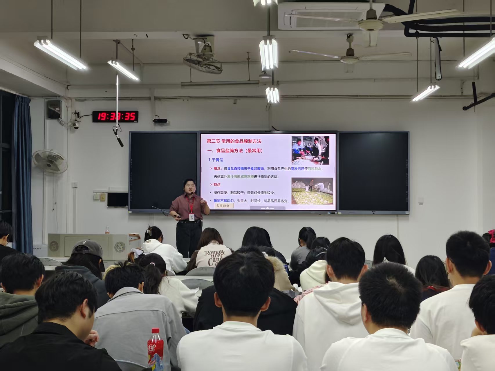 为搭建优质教学交流平台,提高课程教学质量,11月17日,食品与化学工程学院陈雪浈老师在1教201开展《食品保藏原理与技术》公开课。本次课程以“食品腌制与烟熏保藏技术”为核心内容,通过问题导入、案例讲解等方式将传统食品保藏工艺与现代科学原理有机结合,打造了一堂趣味性与专业性兼具的课堂。