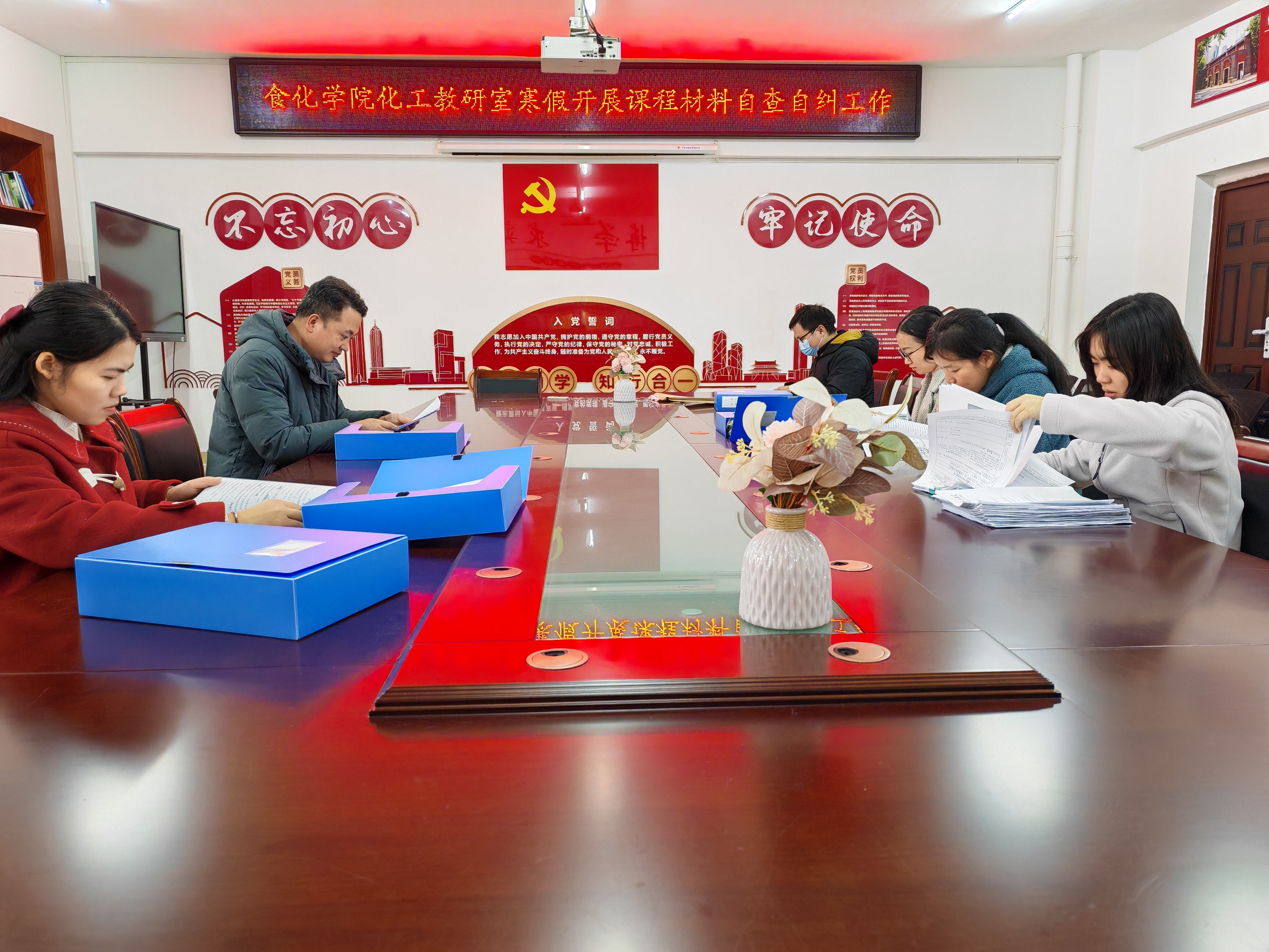 为深入落实本科教学工作合格评估“以评促建、以评促改、以评促管、评建结合”总体要求,筑牢教学质量根基,规范教学材料管理,1月26日至30日,食品与化学工程学院化工教研室组织教师在党员活动室集中开展课程材料自查自纠专项工作。
