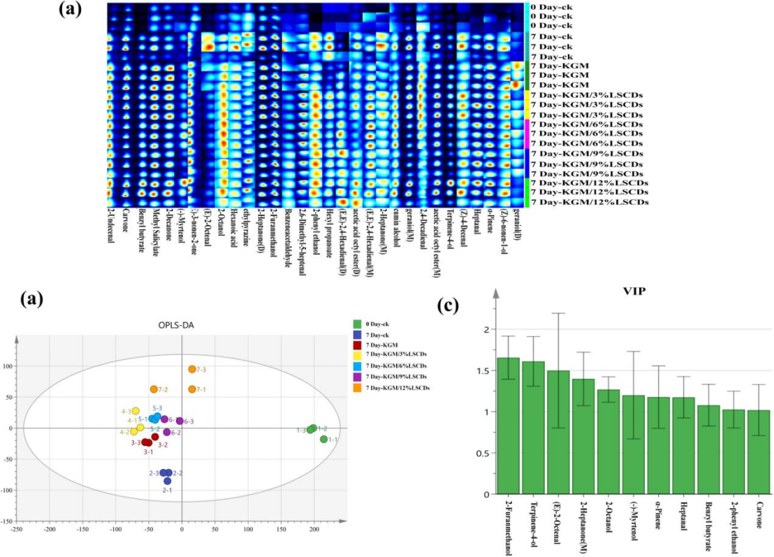 该论文聚焦碗蒸滩羊肉复热过熟味,探讨将荔枝壳衍生碳点(LSCDs)与魔芋葡甘聚糖(KGM)复合,制备具有增强抗氧化活性的KGM/LSCD复合膜。结果表明,含12 wt% LSCDs的KGM膜对DPPH和ABTS自由基的清除率分别为53.50%和69.63%。此外,该复合膜表现出优异的热稳定性及阻氧性能。将其应用于碗蒸滩羊肉后,显著抑制了脂肪酸中氢过氧化物的生成。亚油酸双键得到有效保护,从而增强了抗氧化功效并减缓了异味的产生。挥发性物质分析表明,2-呋喃甲醇、(E)-2-辛烯醛、2-庚酮及庚醛是复热风味(WOF)的主要贡献物质。综上所述,所开发的KGM/LSCD复合膜在抑制复热肉制品过熟味方面展现出良好的应用潜力。
