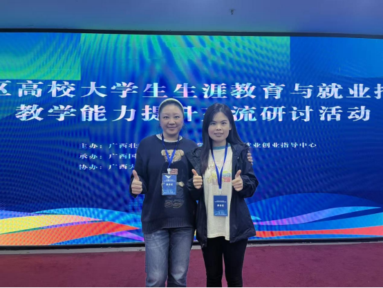 为促进广西高校生涯教育和就业指导工作,做好全国第三届大学生职业规划大赛广西赛区备赛组织与培训。广西壮族自治区高等学校毕业生就业创业指导中心于2025年11月27日至29日举办了“全区高校大学生生涯教育与就业指导教学能力提升交流研讨活动”。创新创业与就业指导教研室选派马一辰和张金凤两位教师参加学习交流,收获颇丰。