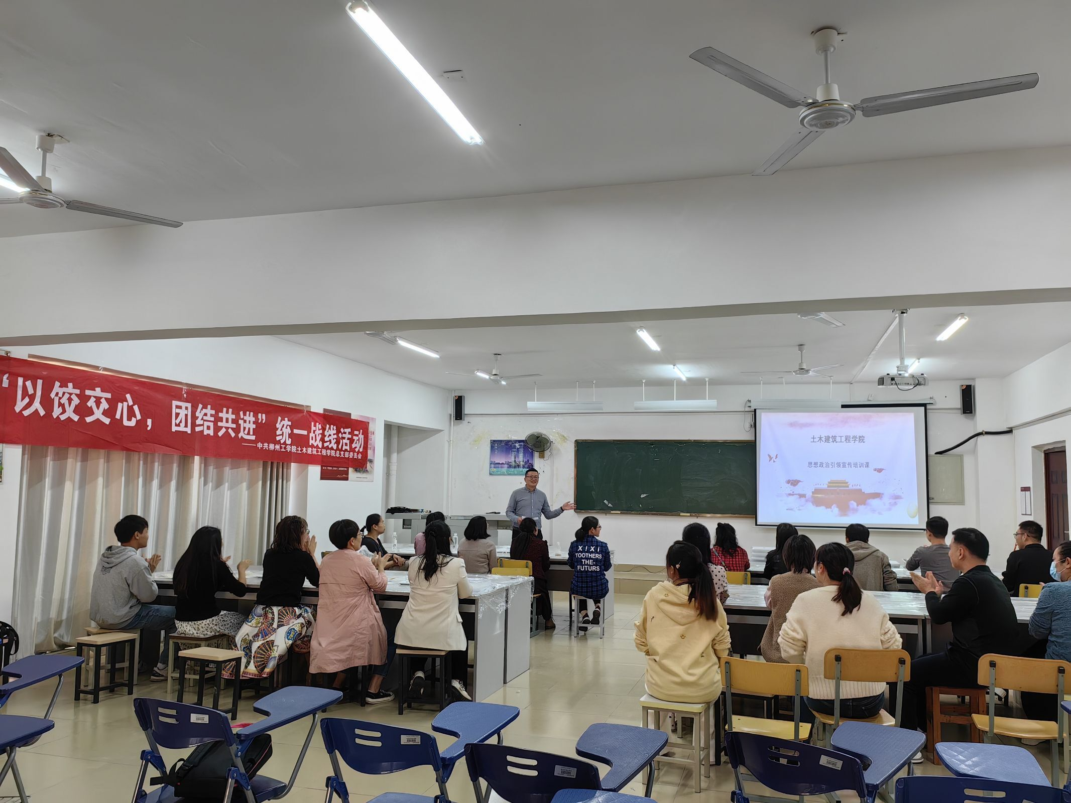 为了弘扬中华传统文化,增强爱国主义情感,增进统一战线内部成员之间的相互了解,增进彼此之间的感情,丰富业余文化生活,提高团队协作能力。2023年11月27日土木建筑工程学院党总支,在第二实训楼330教室开展统一战线“以饺交心,团结共进”活动。学院总支书记韩泳老师、部分党员代表、党外知识分子、群众教师及从事统战工作相关人员参加活动。