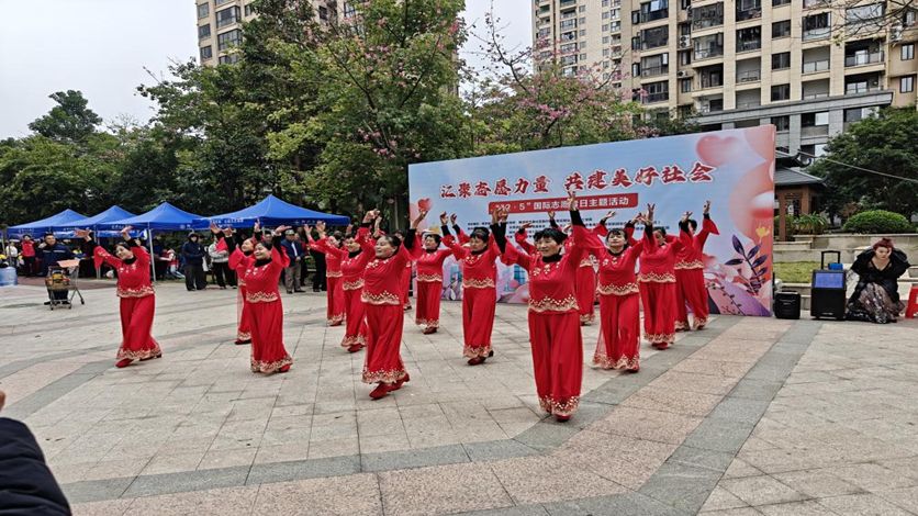 活动中期,社区爷爷奶奶们多才多艺的表演将现场氛围推向高潮。奶奶们身着靓丽服饰,踏着轻盈自信的舞步展现活力风采,瞬间点燃了现场气氛,赢得台下阵阵掌声。爷爷们携带笛子、二胡、吉他登台演奏,不同乐器的声响交织融合,串联起社区浓浓的烟火气息。虽指节泛茧,指腹带纹,但老人们指尖起落间,眼里的光芒堪比春日樱花,尽显岁月沉淀后的从容与热爱。