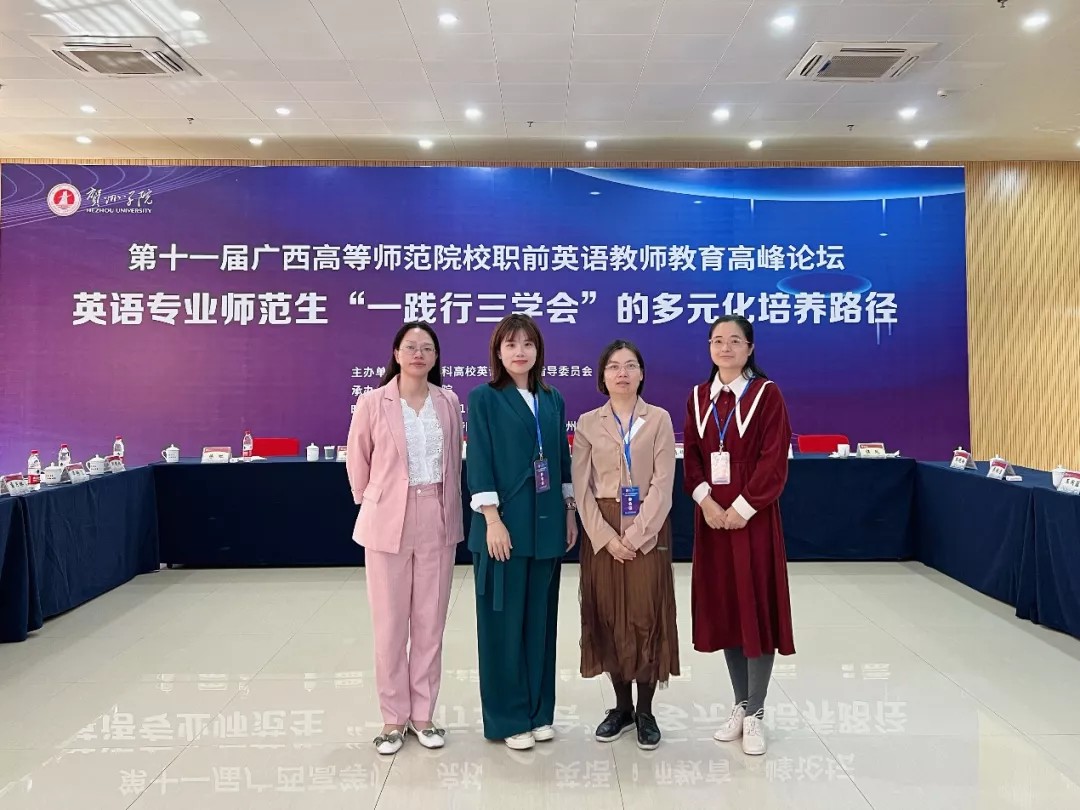 11月12日,语言文化与国际教育学院副院长董月琳率英语专业教研室一行4人参加贺州学院举办的第十一届广西高等师范院校职前英语教师教育高峰论坛。