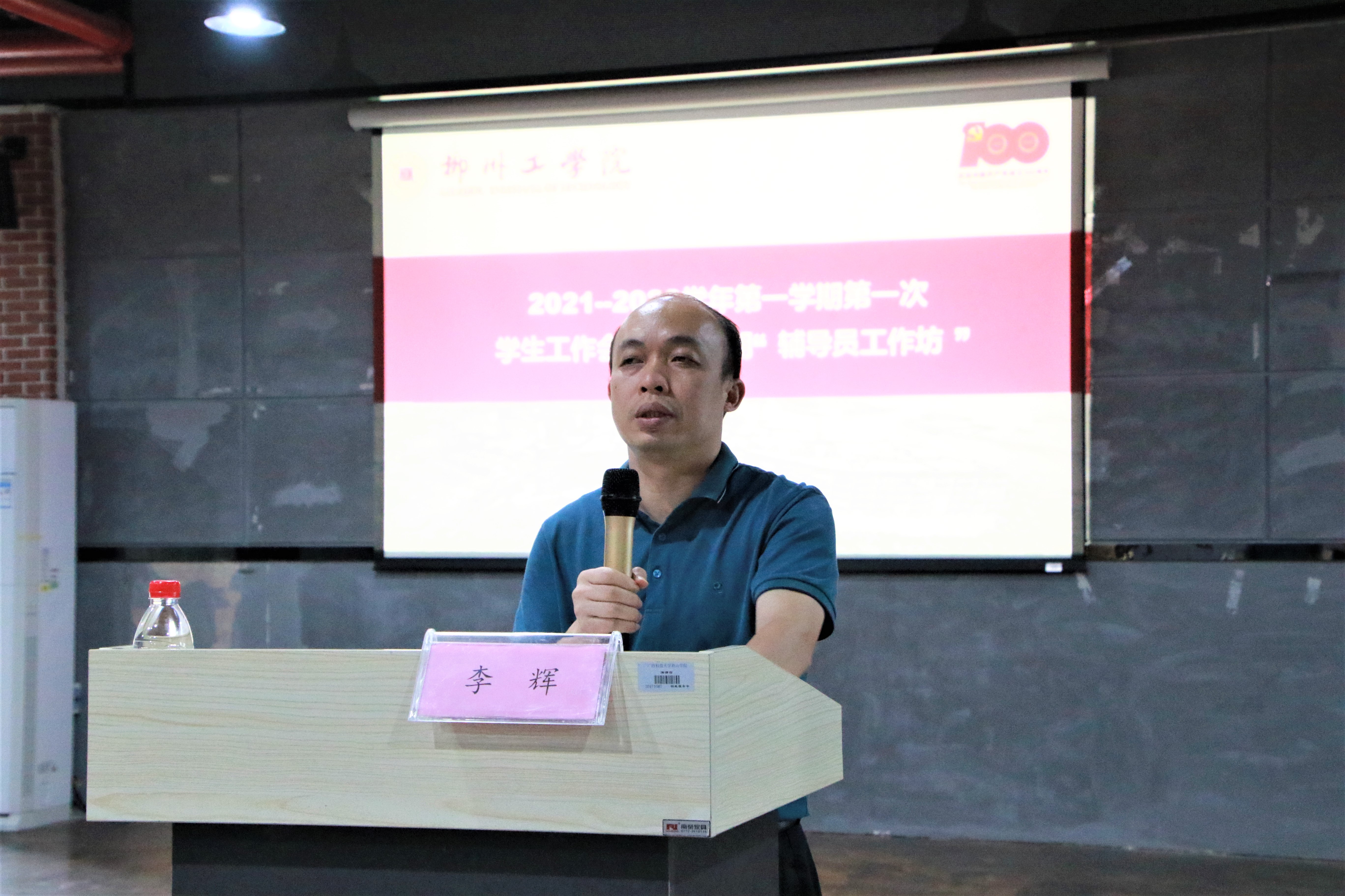 9月16日下午,我校2021-2022学年第一学期第一次学生工作会议暨第五期“辅导员工作坊”在九栋小蚂蚁众创空间召开。校党委副书记李辉,学工部全体人员,各学院党总支副书记,全体辅导员参加会议,会议由学工部部长许孝忠主持。