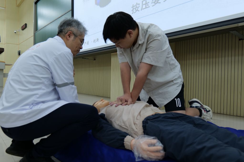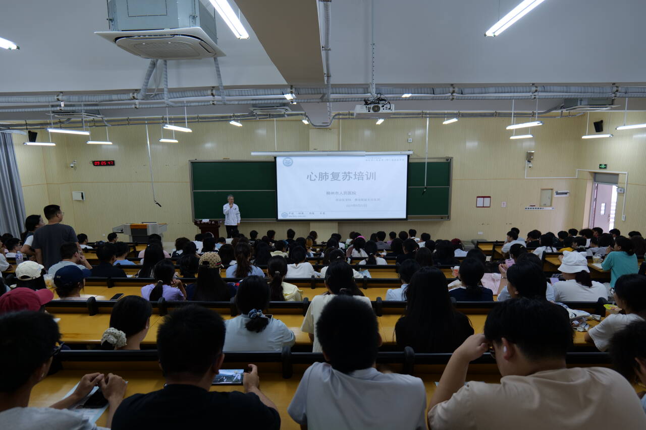 9月12日上午,柳州市人民医院急诊医学科副主任医师黄俊敏以“心肺复苏——守护生命的黄金时刻”为主题,系统讲解心肺复苏(CPR)操作要点。讲座中,黄俊敏将急救流程拆解为 “看、叫、叫、看、按、吹” 六步核心动作,并讲解人工呼吸的操作规范与注意事项。现场还设置模拟实操环节,黄俊敏医生针对新生操作中的问题逐一纠正,确保大家切实掌握急救技能。